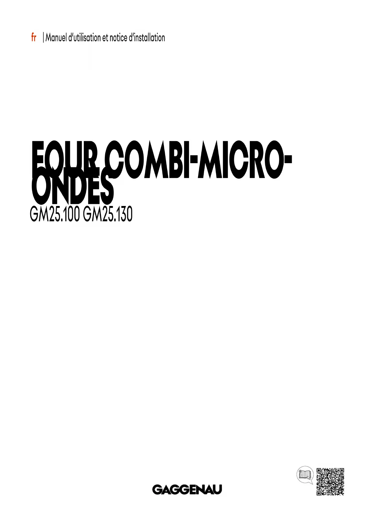- fr | Manuel d'utilisation et notice d'installation Four combi-micro- ondes GM25.100 GM25.130fr Table des matières Vous pouvez trouver d'autres informations et explications en ligne. Scannez le code QR sur la page de titre. Table des matièresTable des matières MANUEL D'UTILISATION 1 Sécurité p. 2