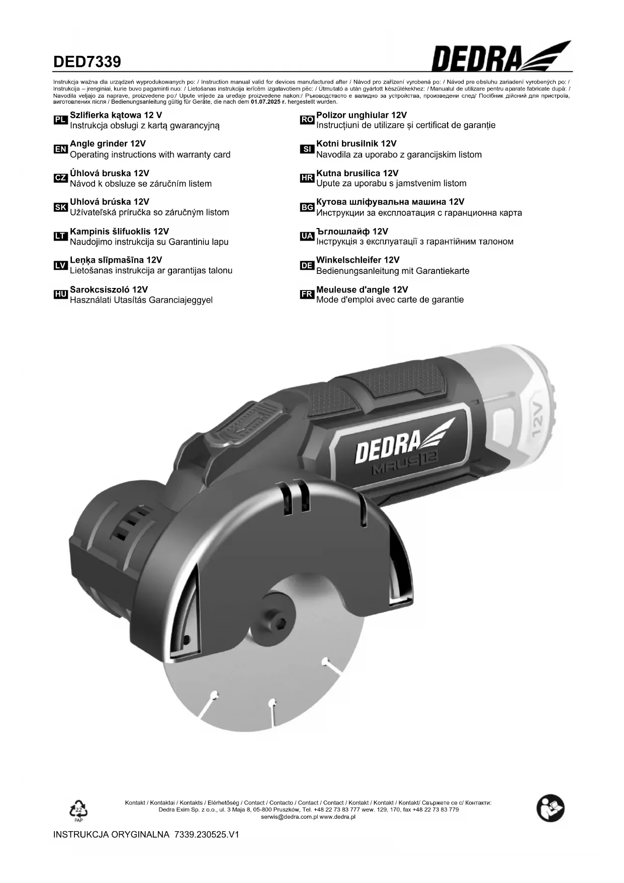 Retrouvez gratuitement la notice de l'appareil DED7339 DEDRA au format PDF.