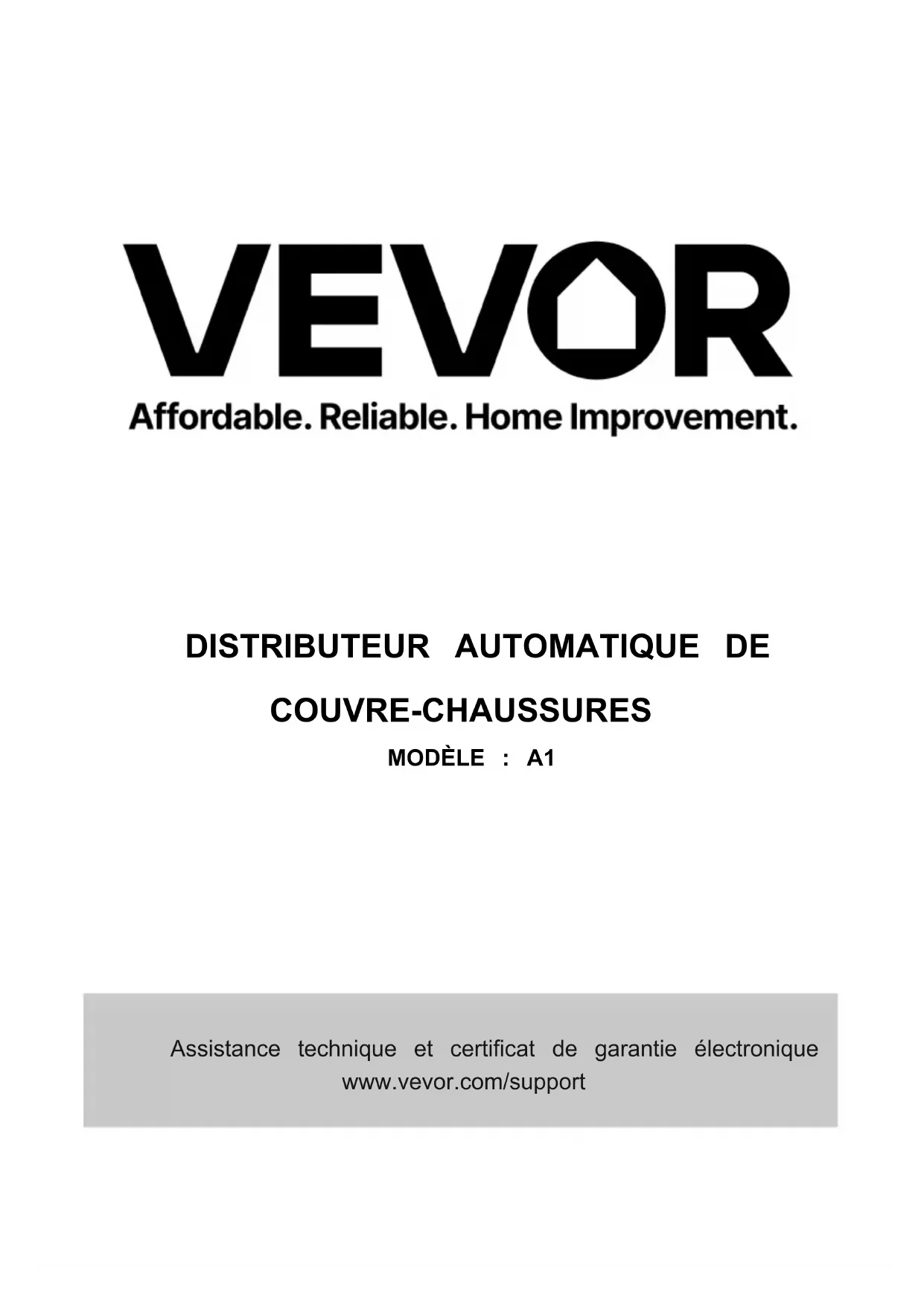 A1 - Distributeur automatique Vevor - Notice d'utilisation et mode d'emploi gratuit