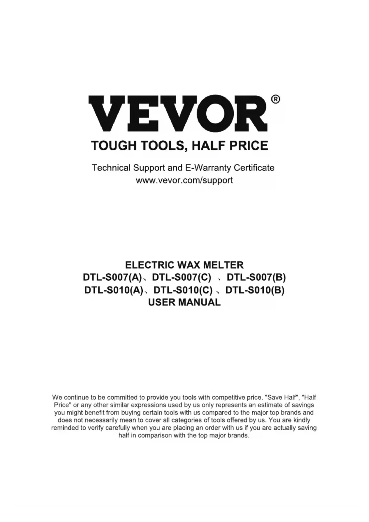 Retrouvez gratuitement la notice de l'appareil DTLS010B Vevor au format PDF.