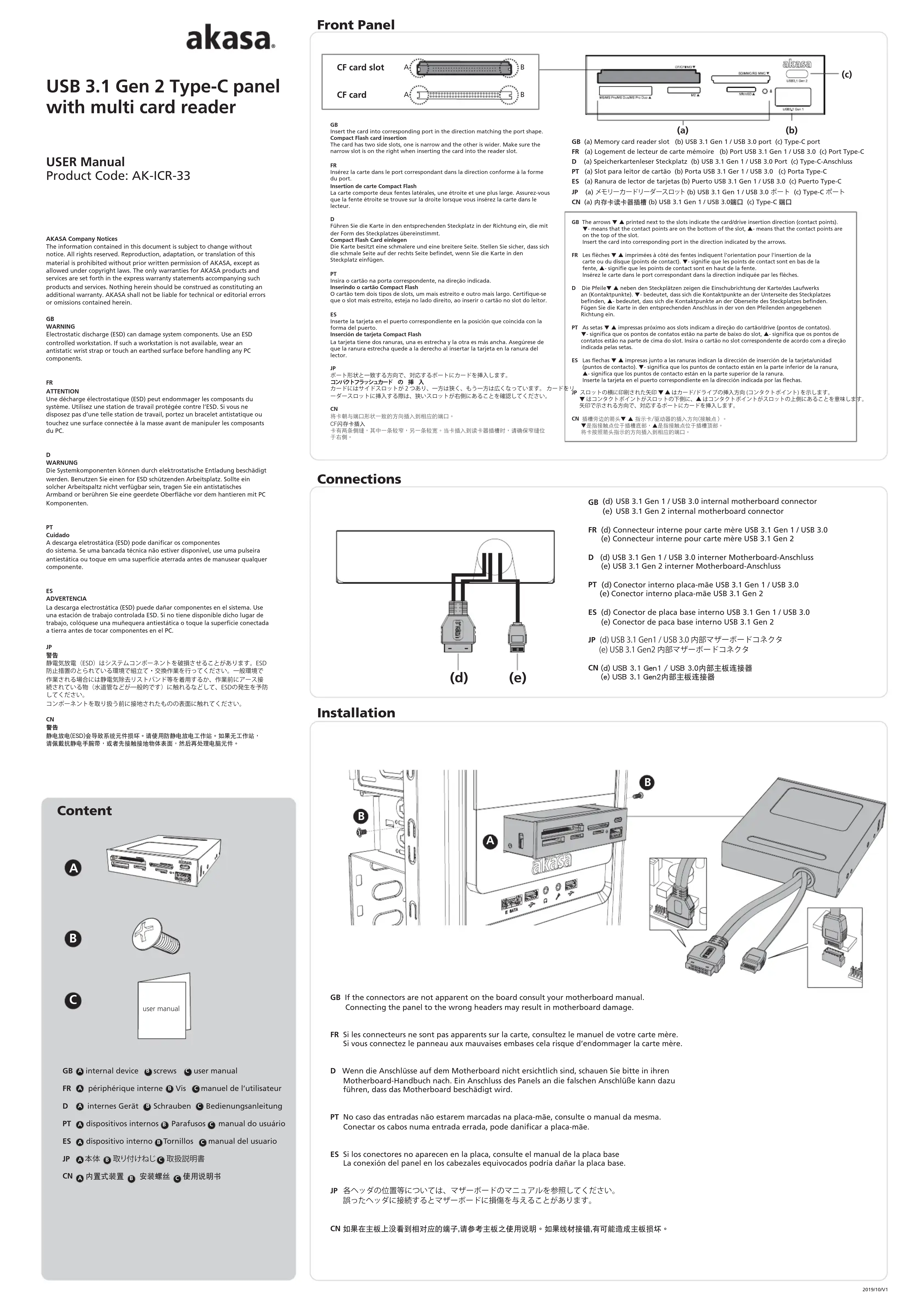 AKICR33 - Lecteur de mémoire AKASA - Notice d'utilisation et mode d'emploi gratuit