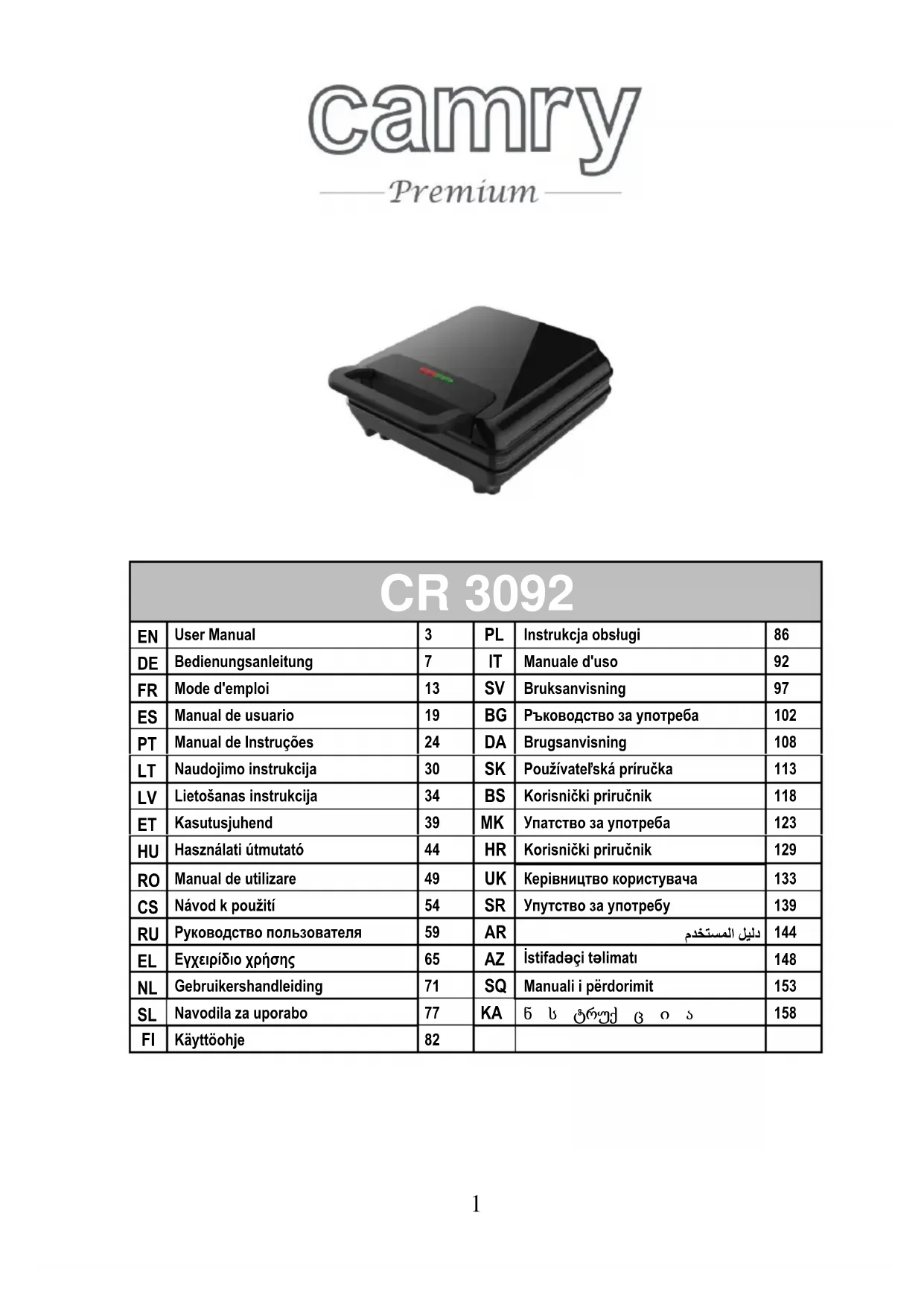 Retrouvez gratuitement la notice de l'appareil CR 3092 CAMRY au format PDF.