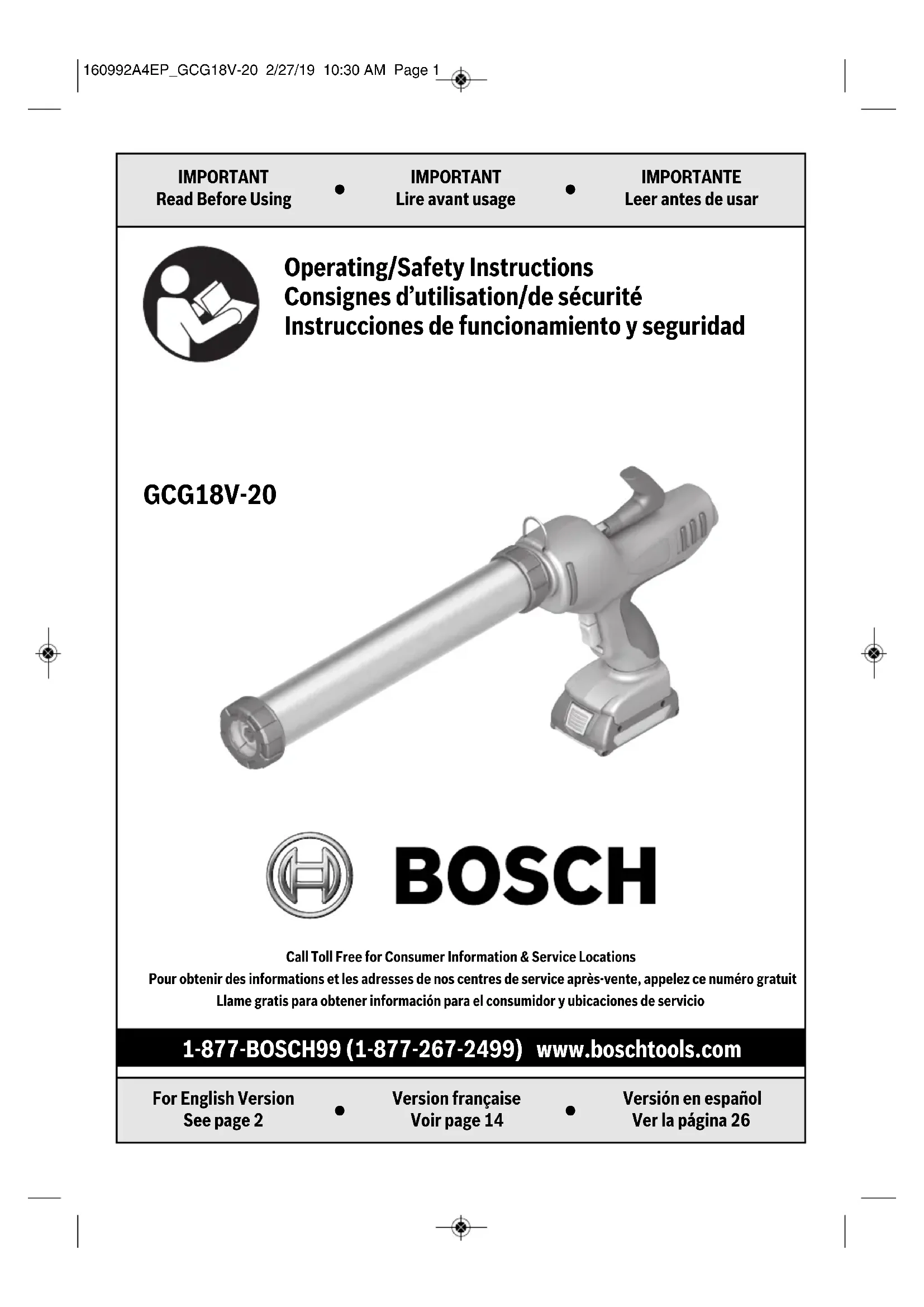 Retrouvez gratuitement la notice de l'appareil GCG18V20 Professional BOSCH au format PDF.
