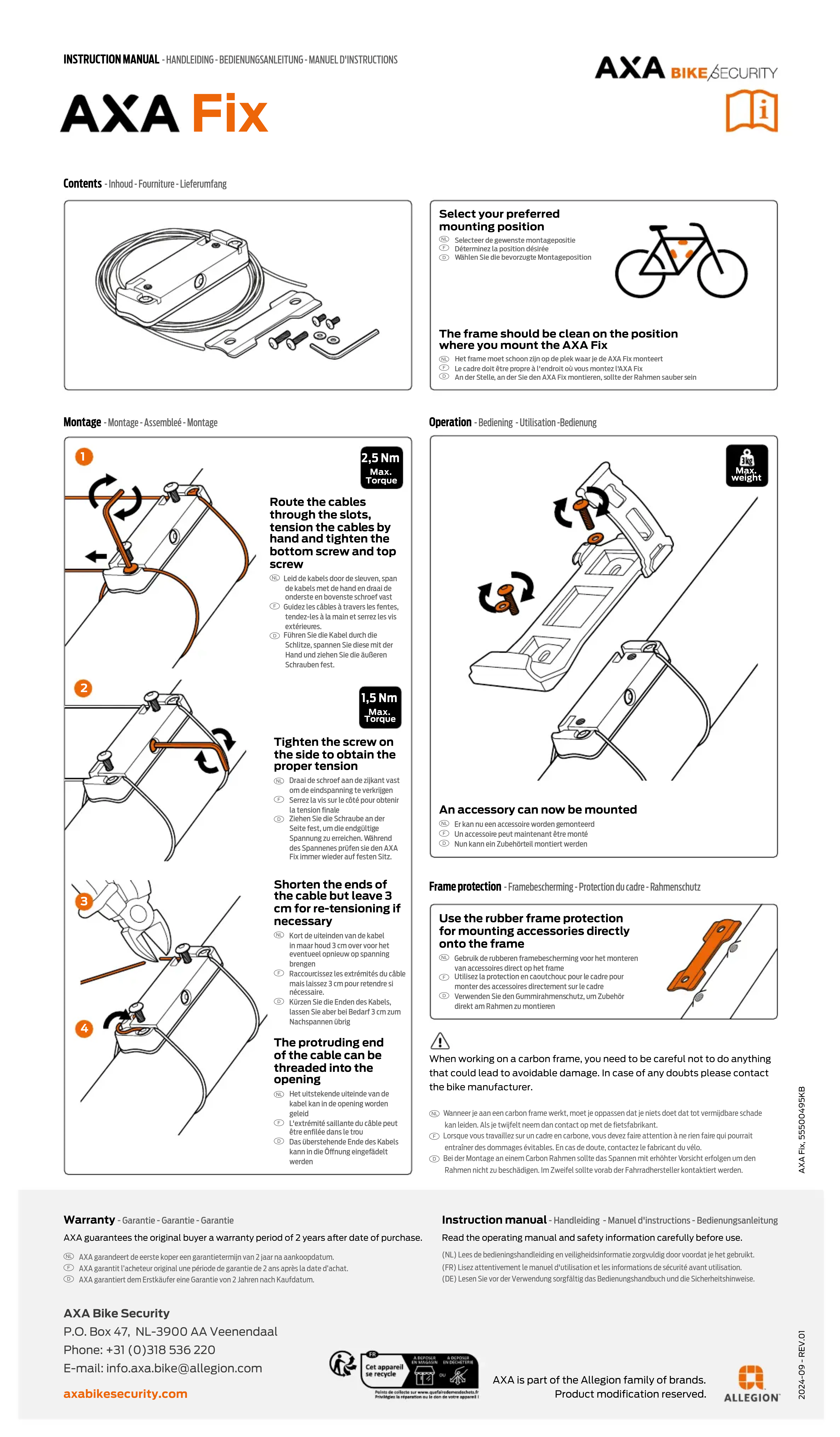 Fix - Accessoire pour vélo AXA - Notice d'utilisation et mode d'emploi gratuit