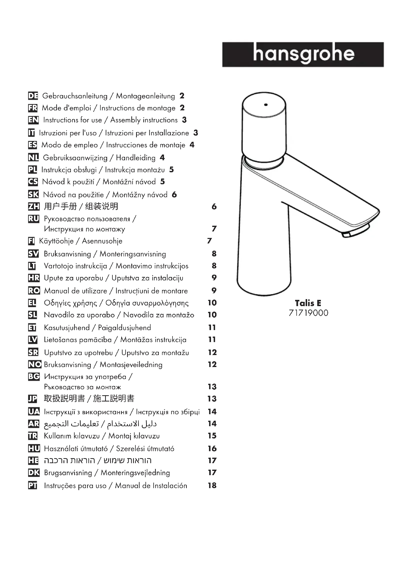 Retrouvez gratuitement la notice de l'appareil Talis E 71719000 Hansgrohe au format PDF.