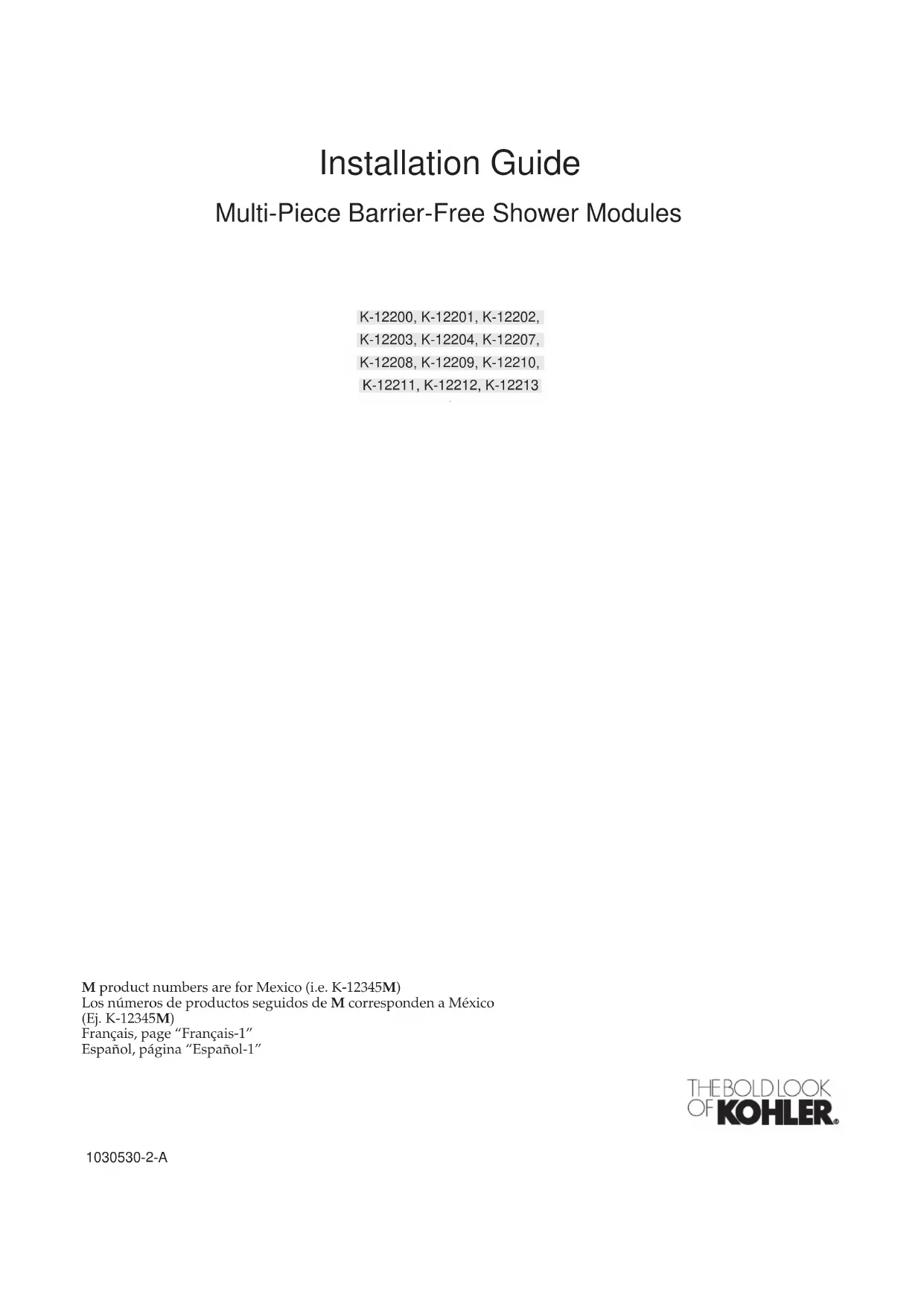 CAUTION: Risk of product damage. Do not allow cleaners containing petroleum distillates to remain in contact with module surfaces for any length of time. CAUTION: Risk of product damage. Do not use abrasive cleaners. When cleaning up after installation, use warm water and an approved liquid cleanser to clean the surface. Stubborn stains, paint or tar can be removed with turpentine or paint thinner. Flush Installation (Top Down View) 2x4 Studs Module 1x2 Brace Water-Resistant Wall Material Trim 1/4" (6mm) Gap Alcove Installation (Top Down View) Module 1x2 Brace 1/4" (6mm) Gap Water-Resistant Wall Material 2x4 Studs Kohler Co. 11 1030530-2-AClean-Up (cont.) Plaster can be removed by scraping with a wood edge. Do not use metal scrapers, wire brushes, or other metal tools. Use warm water and an approved liquid cleanser to provide mild abrasive action to remove residual plaster. 1030530-2-A 12 Kohler Co.Guide de l’installation Shower Modules Outils et Matériaux Merci d’avoir choisi la Société KOHLER Nous apprécions votre engagement envers la qualité KOHLER. S’il vous plait, prenez quelques minutes et lisez attentivement ce guide avant de commencer votre installation. N’hésitez pas à nous contacter en cas de problème d’installation ou de fonctionnement. Nos numéros de téléphone et adresse Internet sont au verso. Merci encore d’avoir choisi un produit KOHLER. Avant De Commencer Respectez tous les codes locaux de plomberie et de bâtiment. Déterminez l’emplacement de la plomberie brute servant au drain, selon les dimensions du plan de raccordement. Multiples installations sont possibles. Ces instructions montrent les procédures d’installation, il se pourrait que vous ayez à utiliser d’autres techniques pour votre installation. Veuillez lire avec attention cette notice pour connaître les outils et matériaux requis, ainsi que les étapes d’installation. Suivez les étapes qui s’appliquent particulièrement à votre installation. Ceci vous évitera des erreures coûteuses. Évitez de déformer les parois latérales pour ne pas endommager cet l’appareil. Déballez l’appareil de douche et examinez le soigneusement pour en déceler tout dommage. Si vous notez des dommages, n’installez pas cet appareil. Veuillez informer votre Distributeur du problème immédiatement. Remettre le receveur dans son emballage de protection en attendant de commencer l’installation. Isolez les parois extérieures avant l’installation. Vous devez installer ce receveur de douche sur un sol muni d’un support nécessaire, et de niveau. Assurez-vous de pouvoir déplacer cet appareil dans son aire d’installation. Plus: