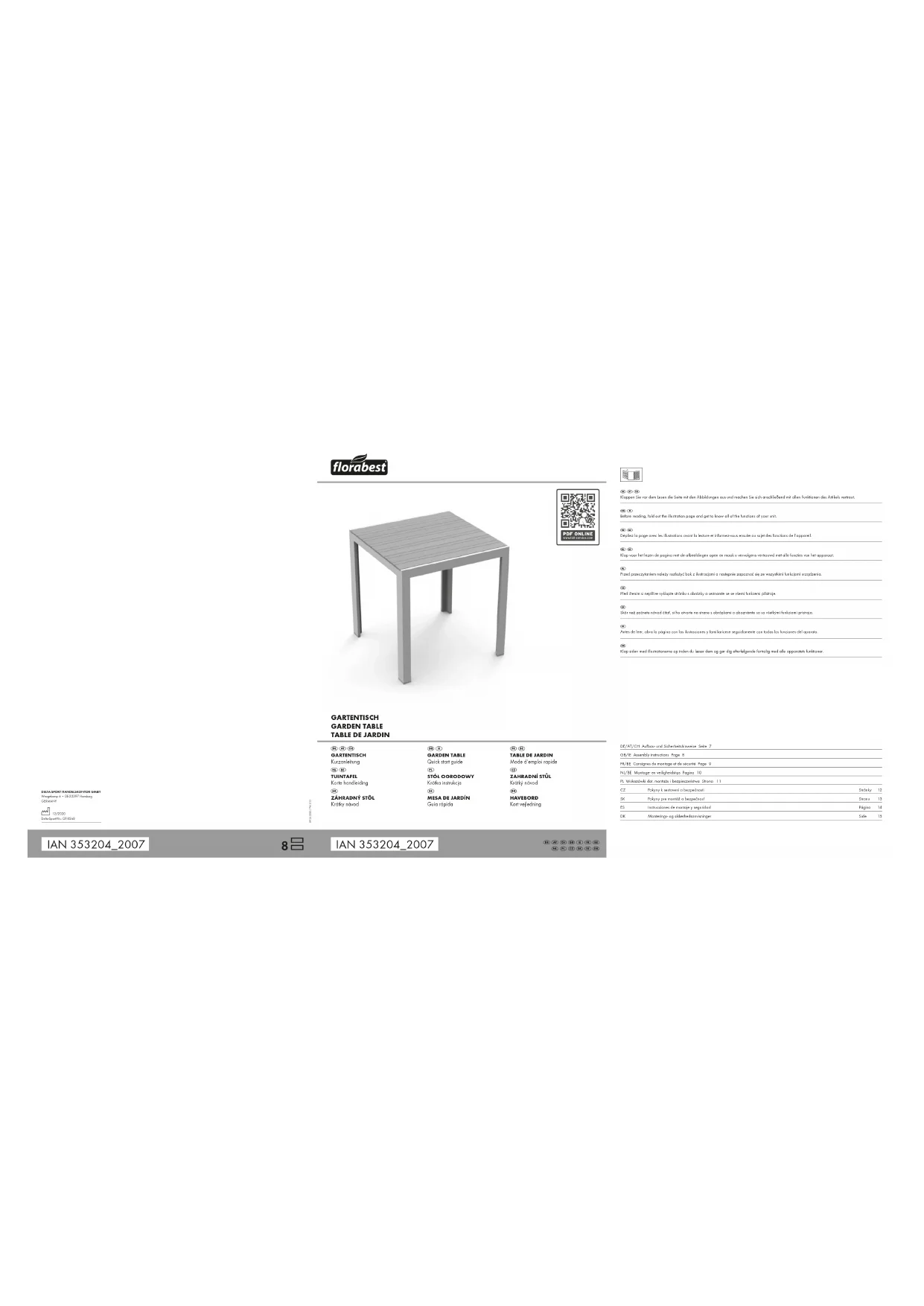 IAN 353204 - Table de jardin FLORABEST - Notice d'utilisation et mode d'emploi gratuit