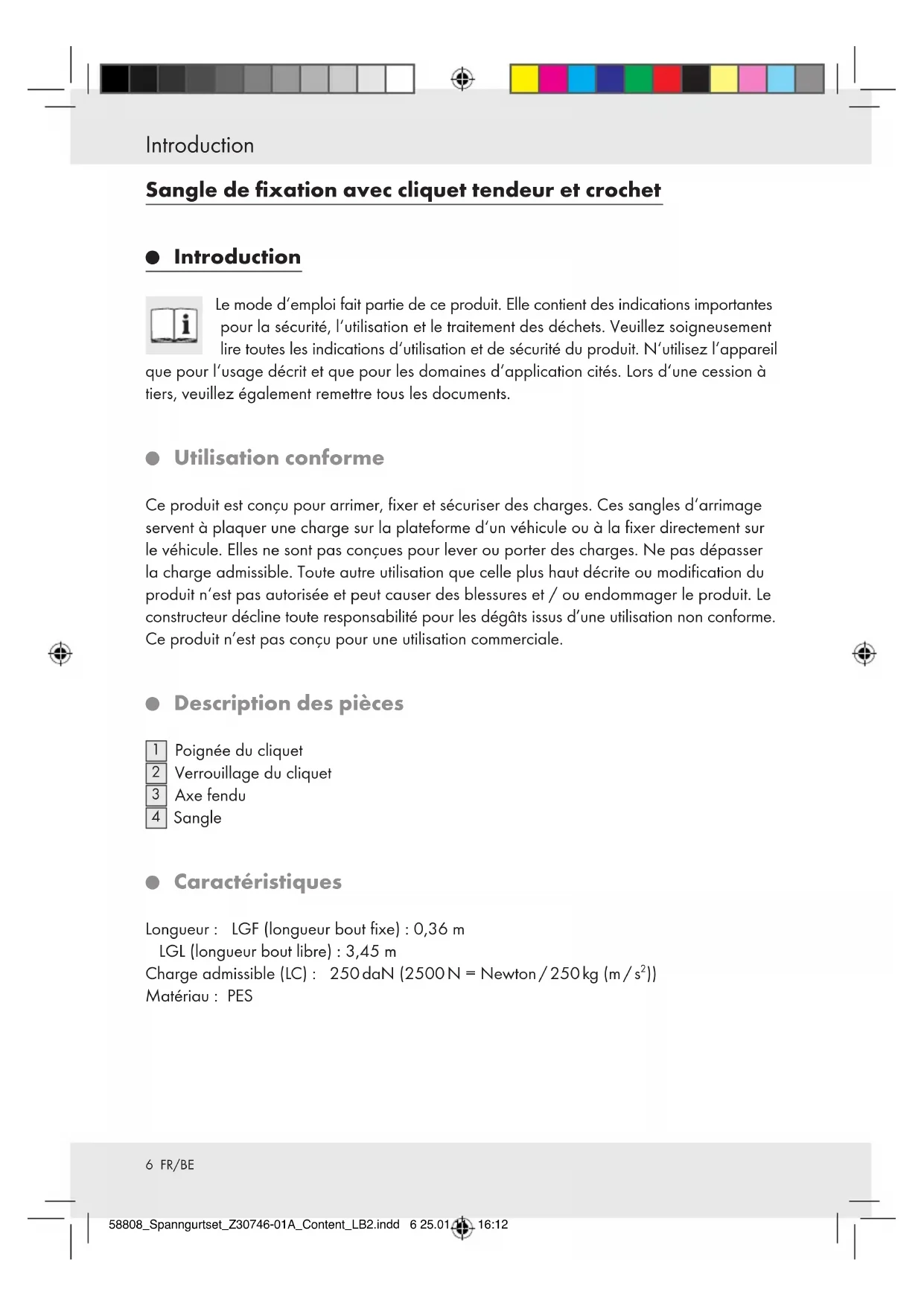 possible, de la charge elle-même. 58808_Spanngurtset_Z30746-01A_Content_LB2.indd 10 25.01.11 16:1211 FR/BE Conseils pratiques pour l’utilisation et l’entretien de ... / Utilisation