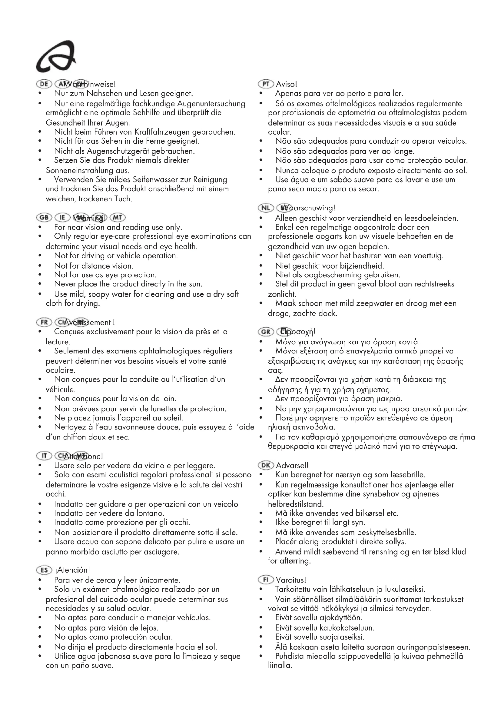 - Conçues exclusivement pour la vision de près et la lecture.