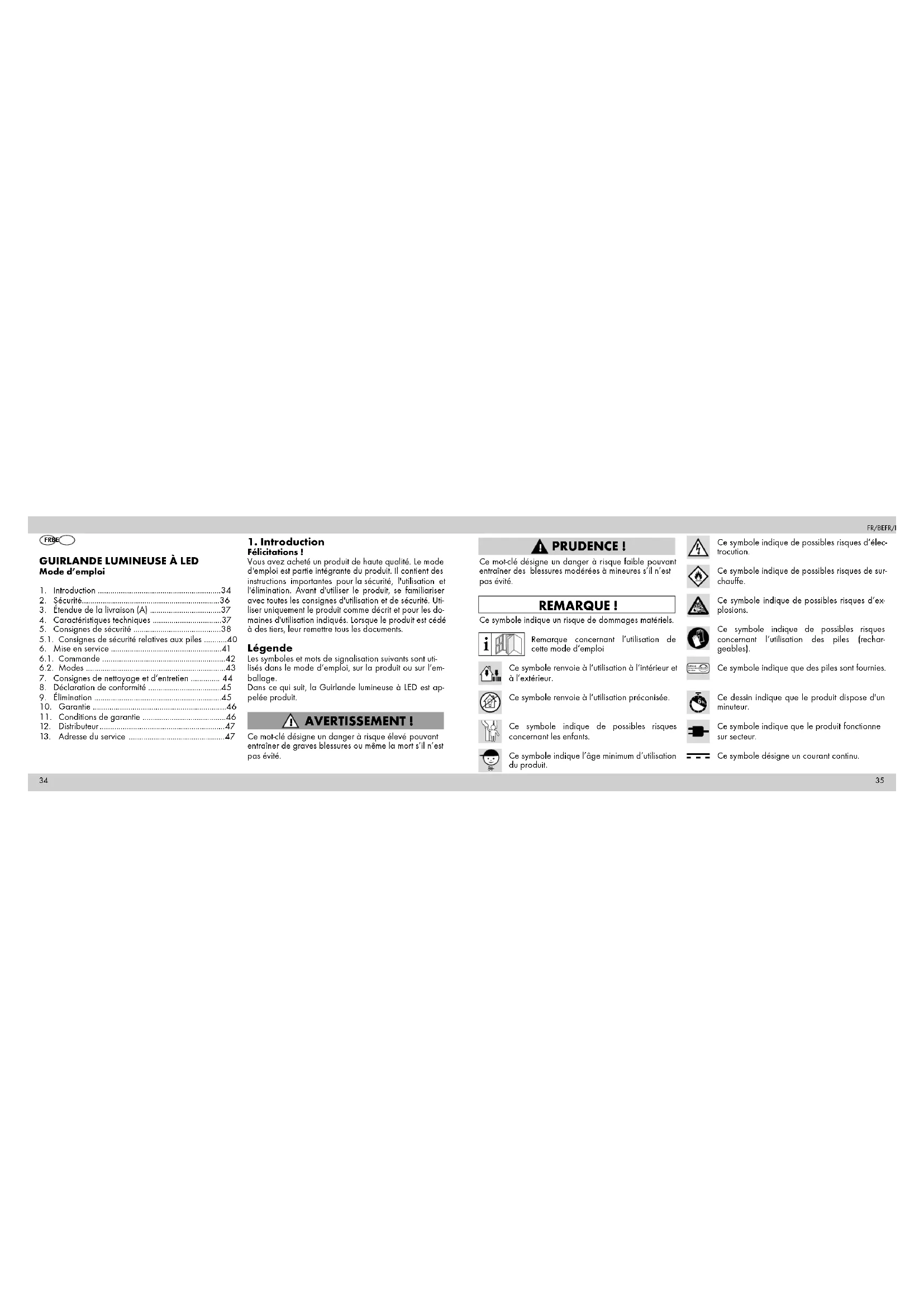 Félicitations ! Vous avez acheté un produit de haute qualité. Le mode d'emploi est partie intégrante du produit. Il contient des instructions importantes pour la sécurité, l'utilisation et l'élimination. Avant d'utiliser le produit, se familiariser avec toutes les consignes d'utilisation et de sécurité. Uti- liser uniquement le produit comme décrit et pour les do- maines d'utilisation indiqués. Lorsque le produit est cédé à des tiers, leur remettre tous les documents. Légende Les symboles et mots de signalisation suivants sont uti- lisés dans le mode d’emploi, sur la produit ou sur l’em- ballage. Dans ce qui suit, la Guirlande lumineuse à LED est ap- pelée produit.