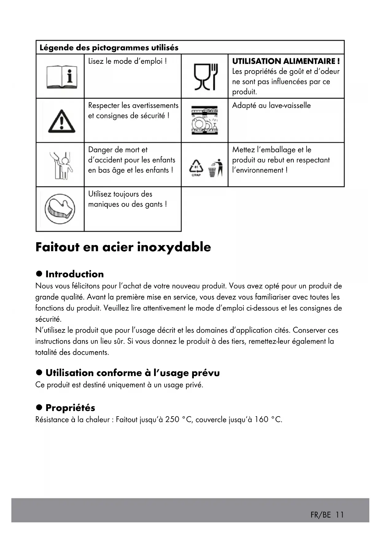 Instructions d'utilisation et consignes de sécurité - FR/BE Cote 11