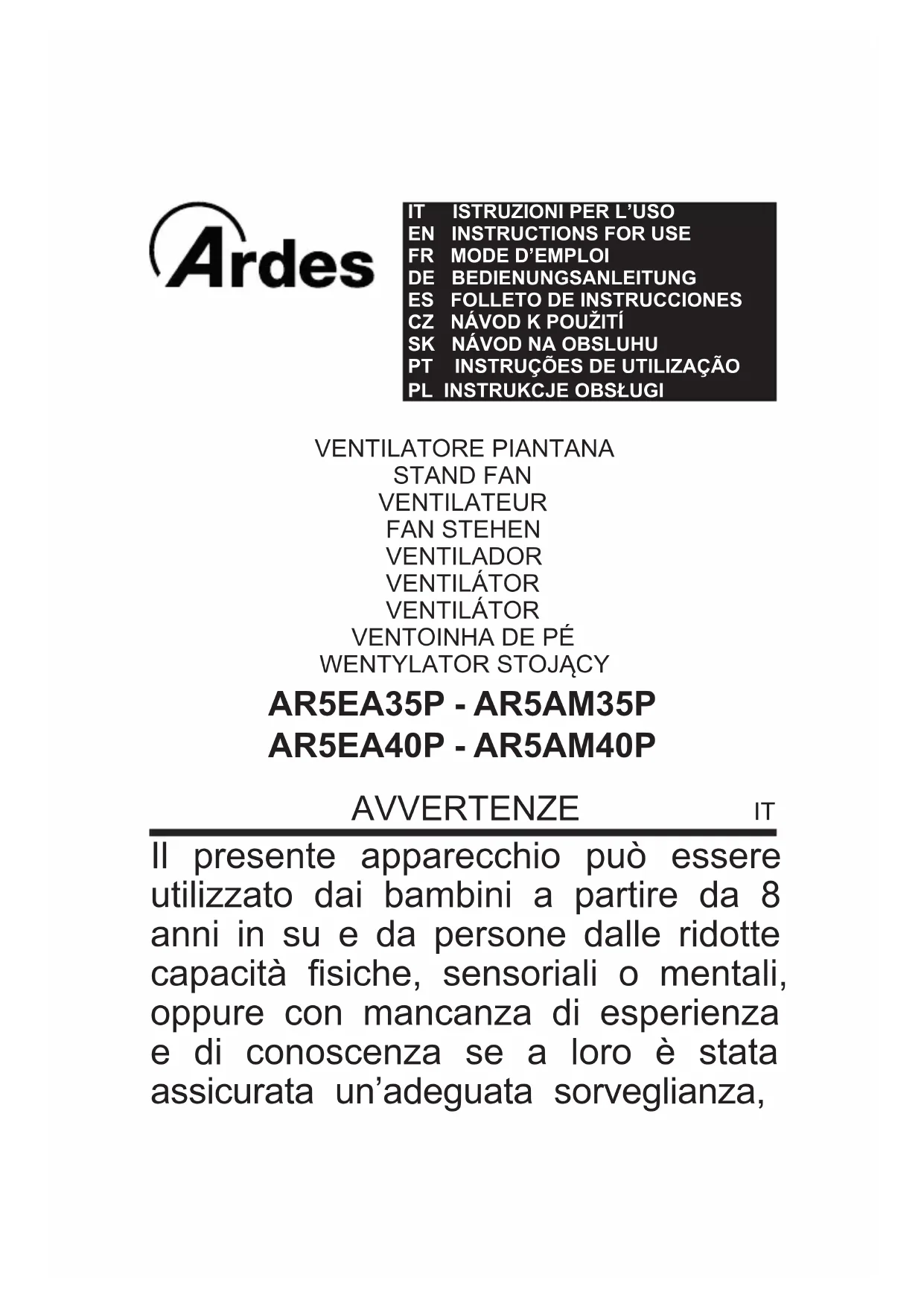 AR5EA35P - Ventilateur ARDES - Notice d'utilisation et mode d'emploi gratuit
