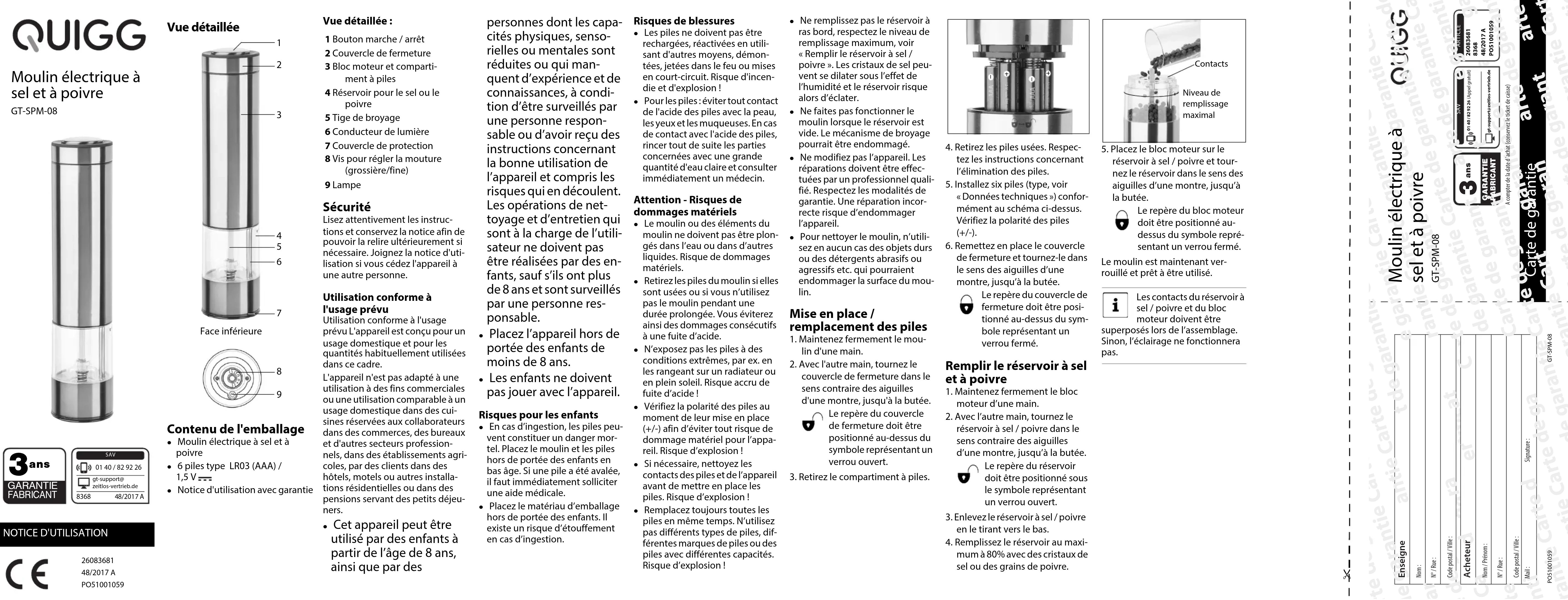 GTSPM08 - Moulin à sel/poivre QUIGG - Notice d'utilisation et mode d'emploi gratuit