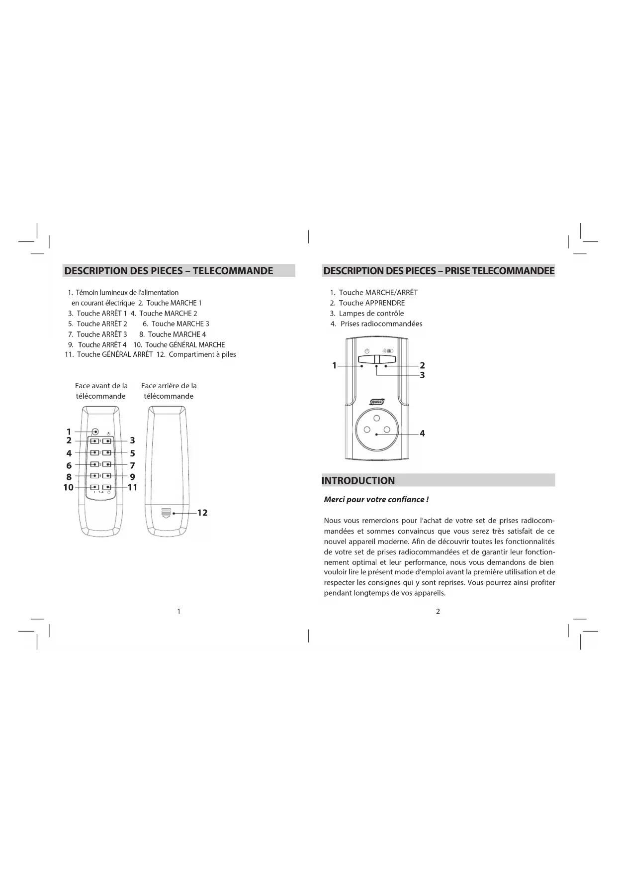DESCRIPTION DES PIECES – PRISE TELECOMMANDEE