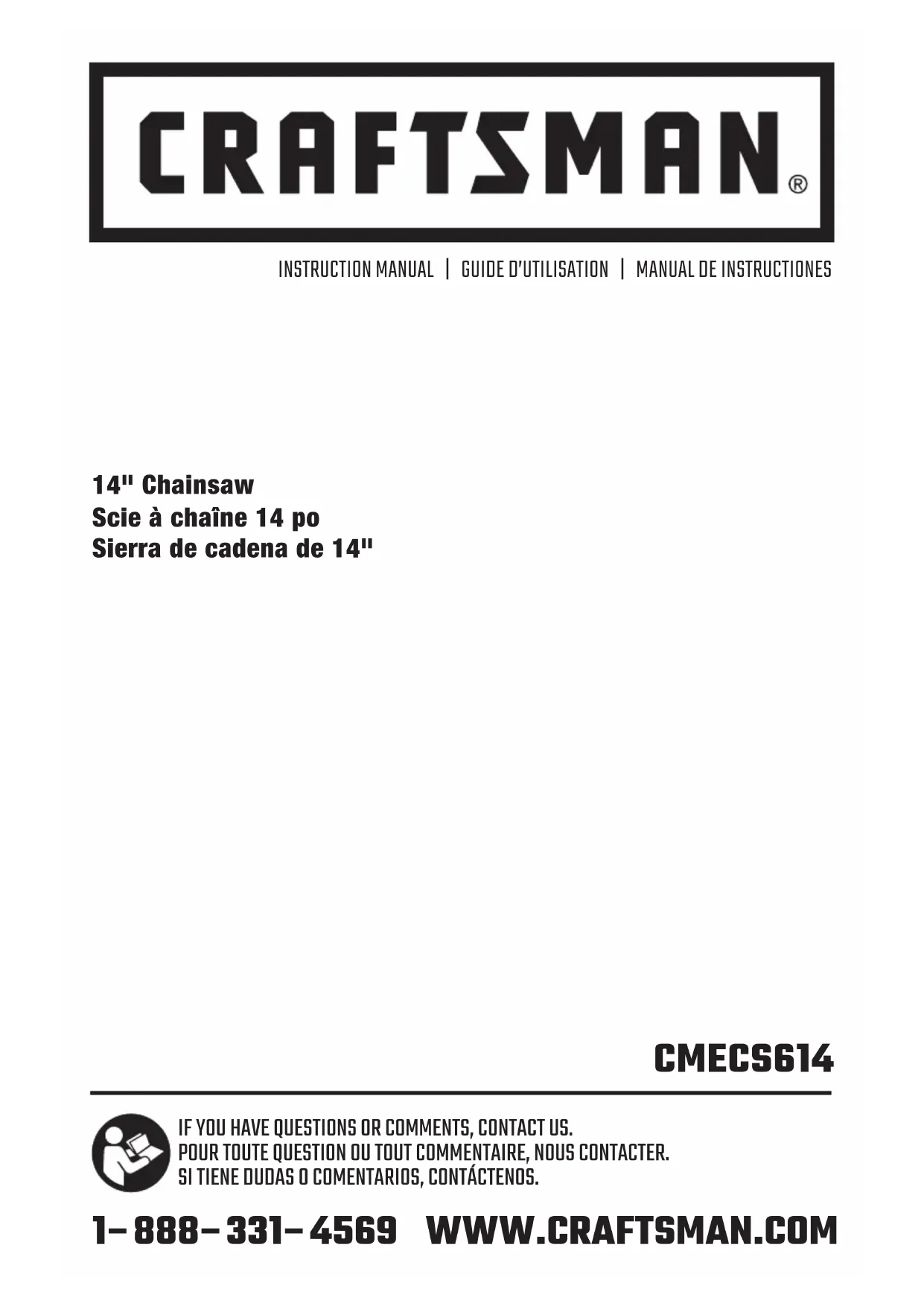 blessures, lire le mode d’emploi del’outil. Pour toute question ou remarque au sujet de cet outil ou de tout autre outil CRAFTSMAN composez le numéro sans frais : 1-888-331-4569.