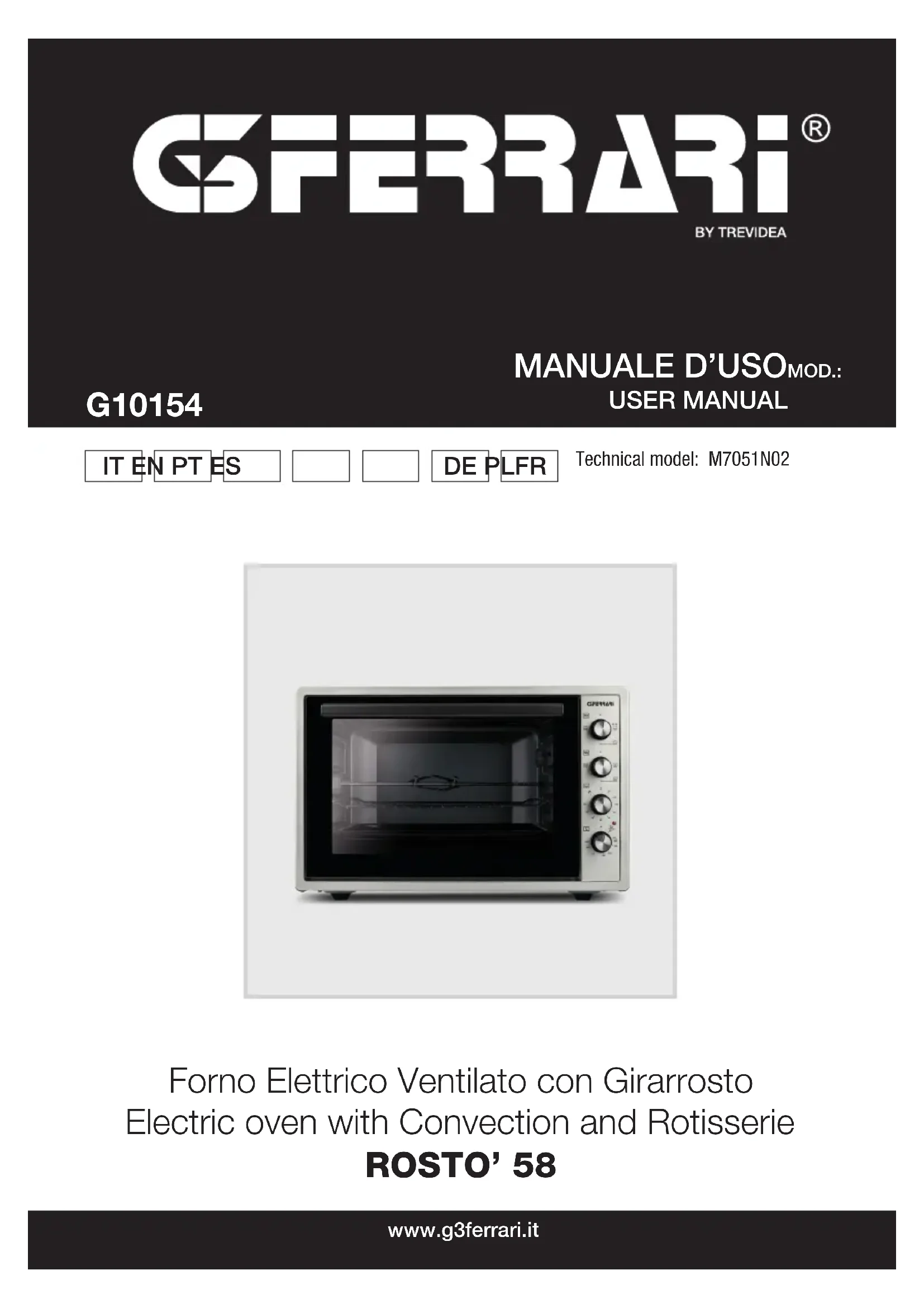 Téléchargez la notice de votre Four au format PDF gratuitement ! Retrouvez votre notice ROSTO’ 58 - G3 Ferrari et reprennez votre appareil électronique en main. Sur cette page sont publiés tous les documents nécessaires à l'utilisation de votre appareil ROSTO’ 58 de la marque G3 Ferrari.