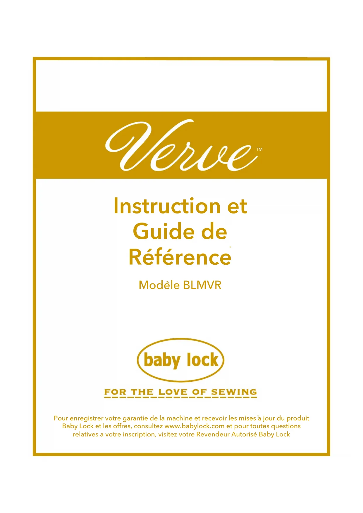 Modele BLMVR Pour enregistrer votre garantie de la machine et recevoir les mises a jour du produit Baby Lock et les offres, consultez www.babylock.com et pour toutes questions relatives a votre inscription, visitez votre Revendeur Autorisé Baby Lock