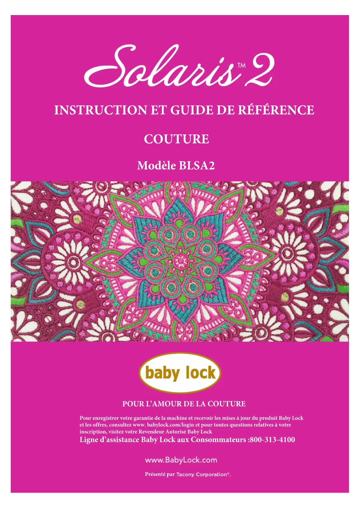 Solaris 2 - Machine à broder BABY LOCK - Notice d'utilisation et mode d'emploi gratuit