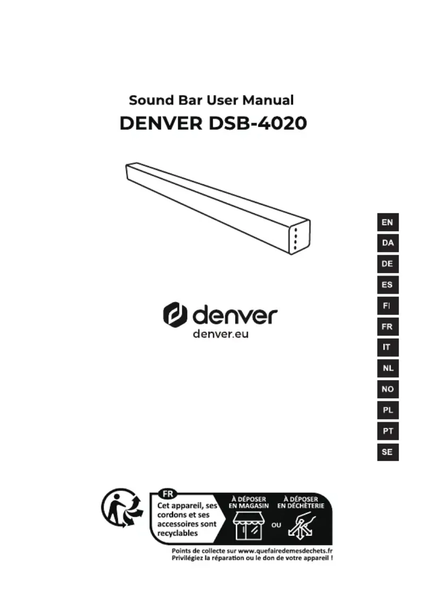DSB4020 - Barre de son DENVER - Notice d'utilisation et mode d'emploi gratuit