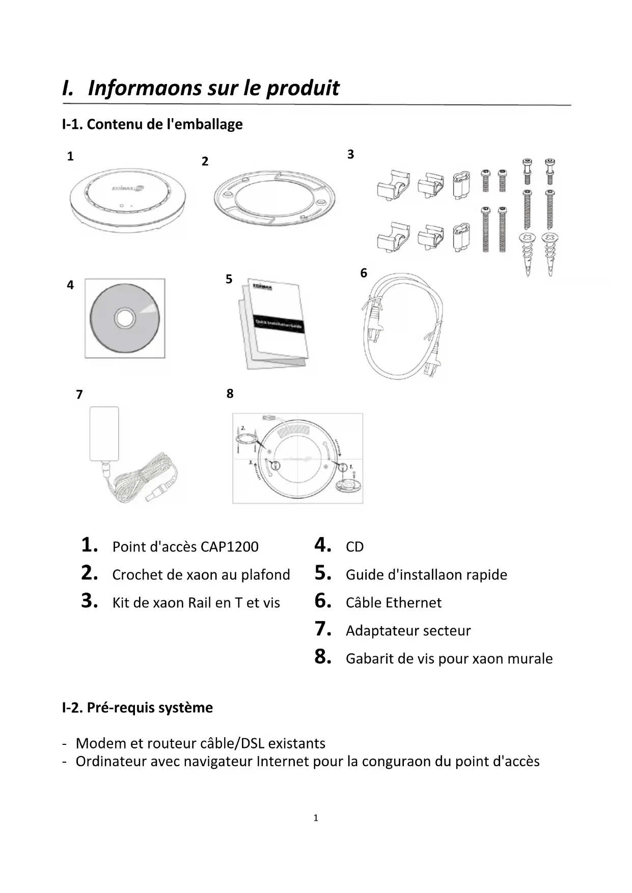 I-1. Contenu de l'emballage
