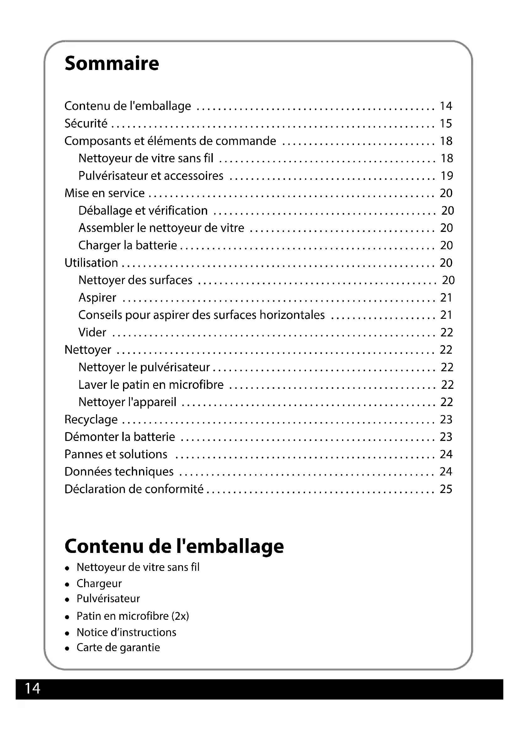 - Nettoyeur de vitre sans fil p. 18