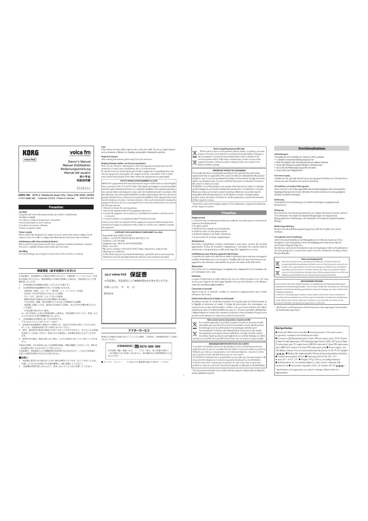 Retrouvez gratuitement la notice de l'appareil Volca FM2 KORG au format PDF.