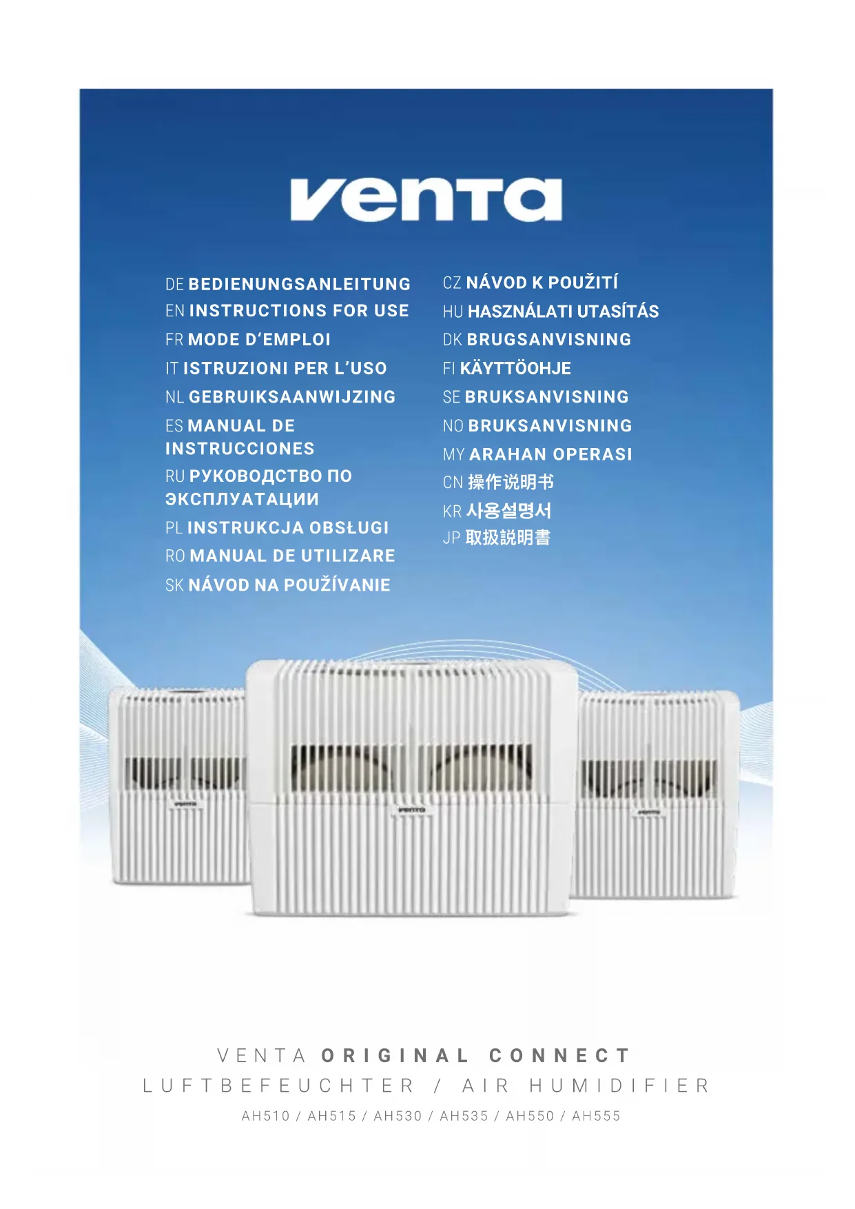 AH550 - Humidificateur Venta - Notice d'utilisation et mode d'emploi gratuit