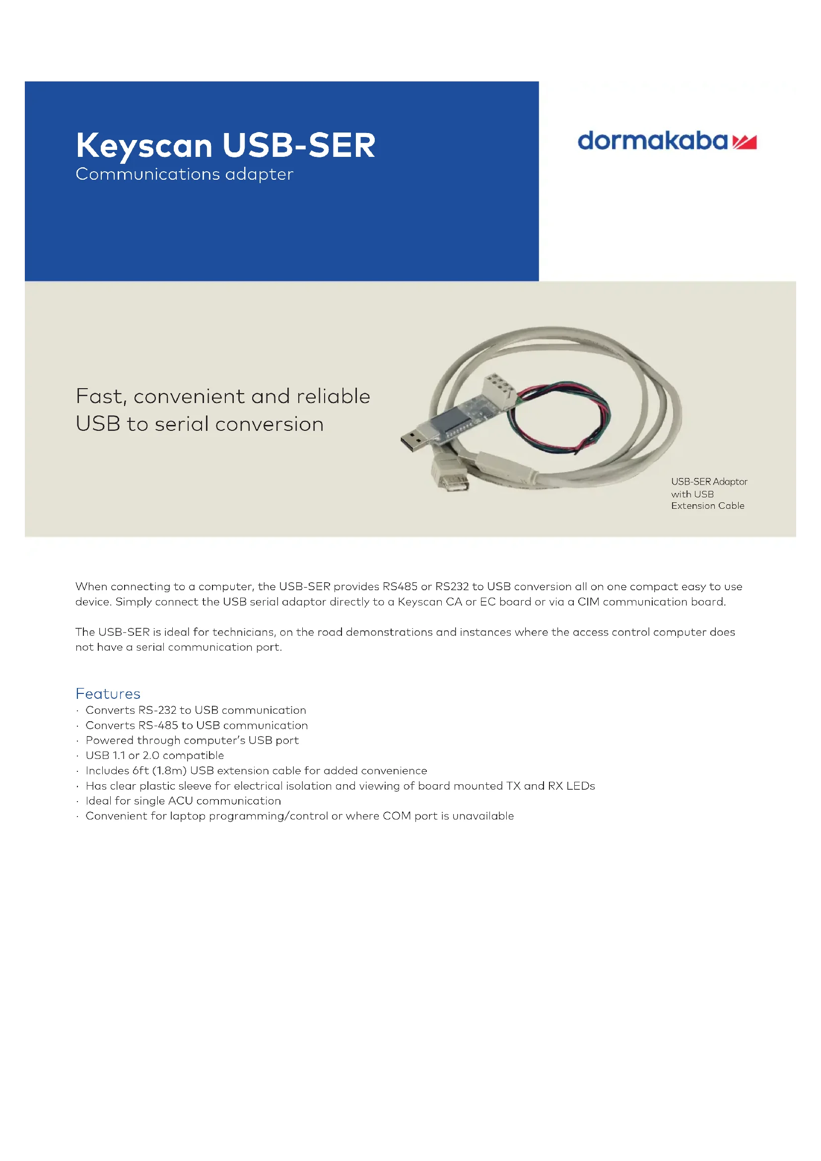 Keyscan USBSER - Non catégorisé Dormakaba - Notice d'utilisation et mode d'emploi gratuit