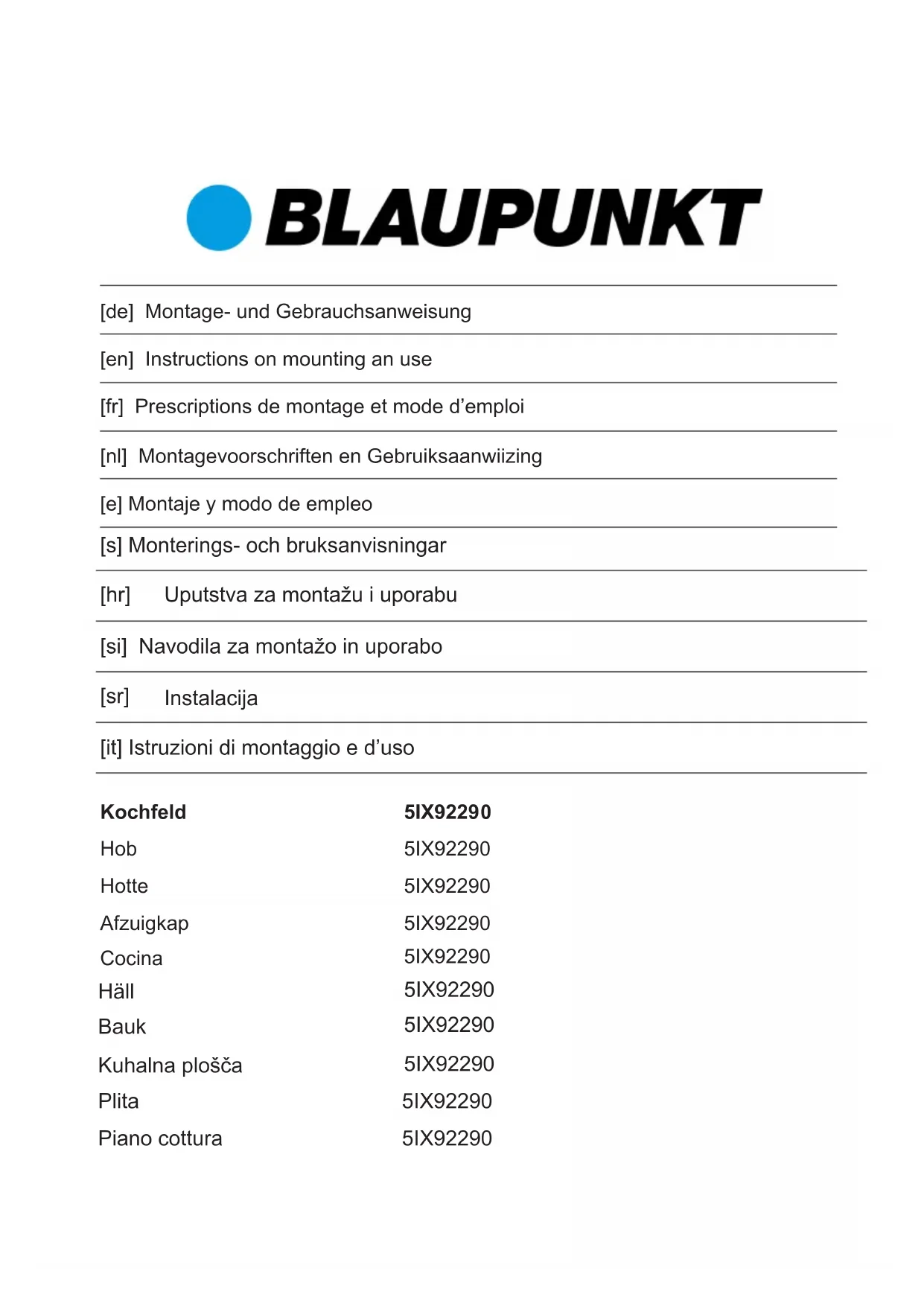 5IX92290 - Hotte BLAUPUNKT - Notice d'utilisation et mode d'emploi gratuit