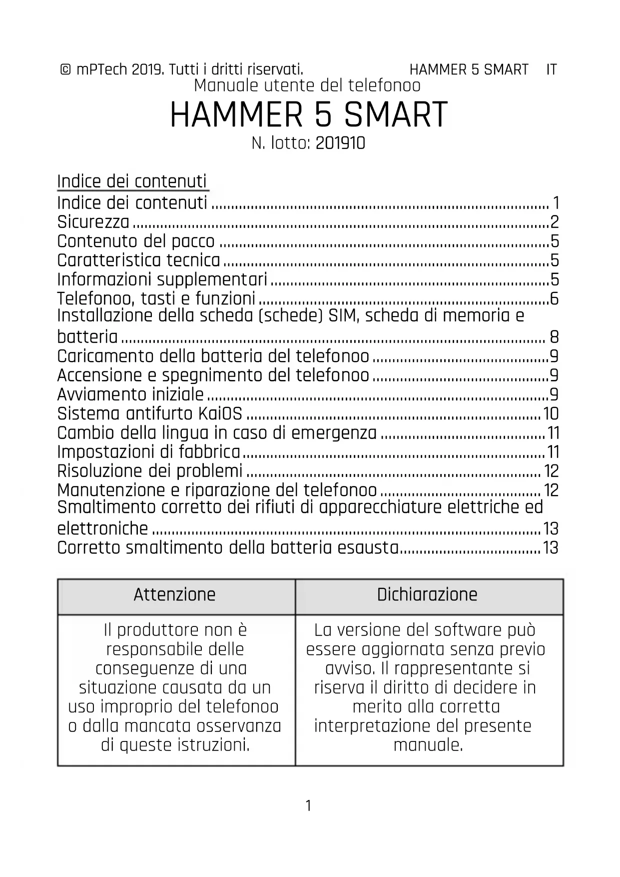 - Mode d’emploi du téléphone HAMMER 5 SMART Numéro de lot: 201910 Table des matières Table des matières p. 14