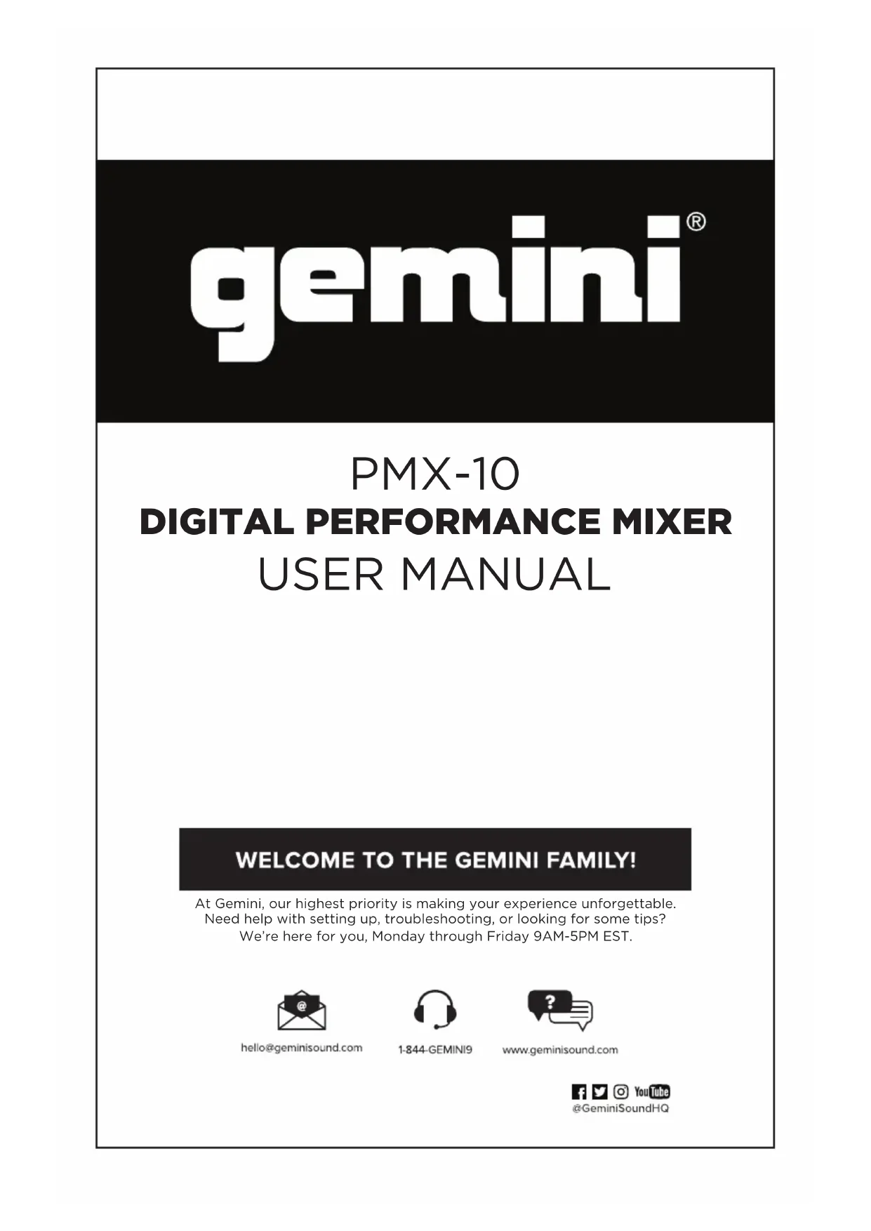 PMX10 - Equipement DJ GEMINI - Notice d'utilisation et mode d'emploi gratuit