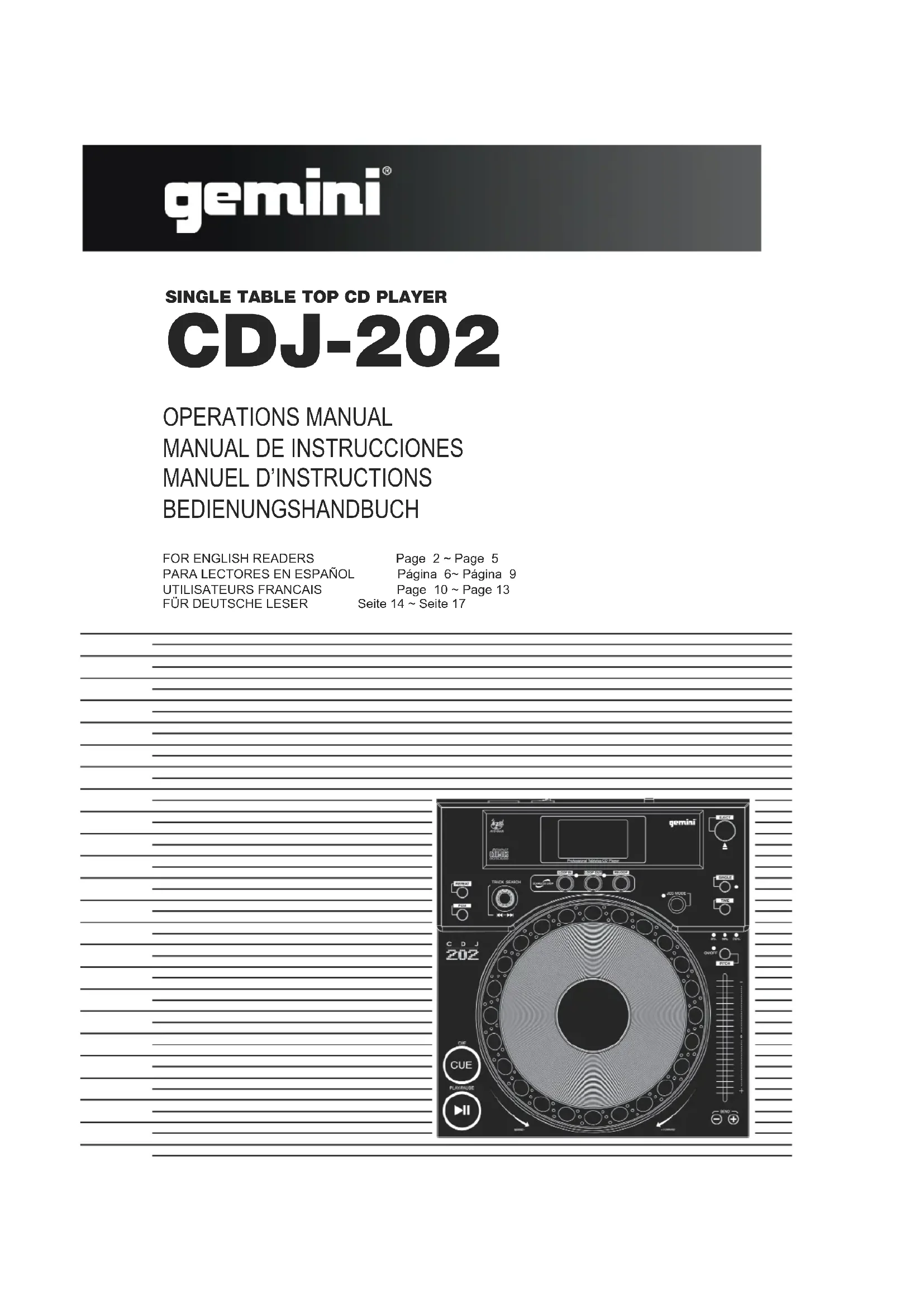 Retrouvez gratuitement la notice de l'appareil CDJ202 GEMINI au format PDF.