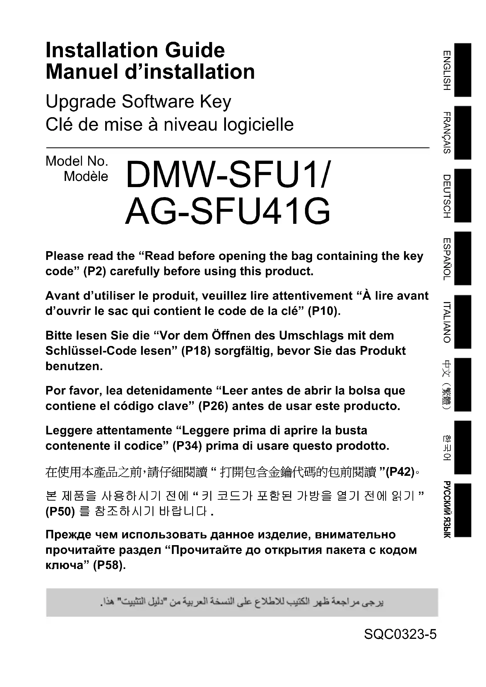 Une clé de mise à niveau logicielle ne peut activer le logiciel que d’un seul appareil photo. ∫ Contenu de la boîte 1 Un sac contenant un code de clé 2 Un manuel d’installation et un Contrat de licence de logiciel (le présent dépliant) À lire avant utilisation À lire avant d’ouvrir le sac qui contient le code de la clé