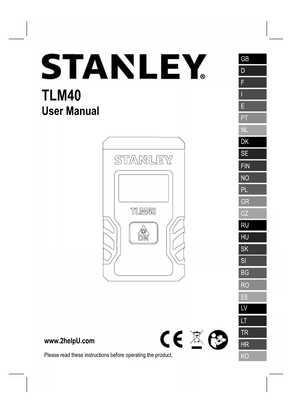 Retrouvez gratuitement la notice de l'appareil TLM40 STANLEY au format PDF.