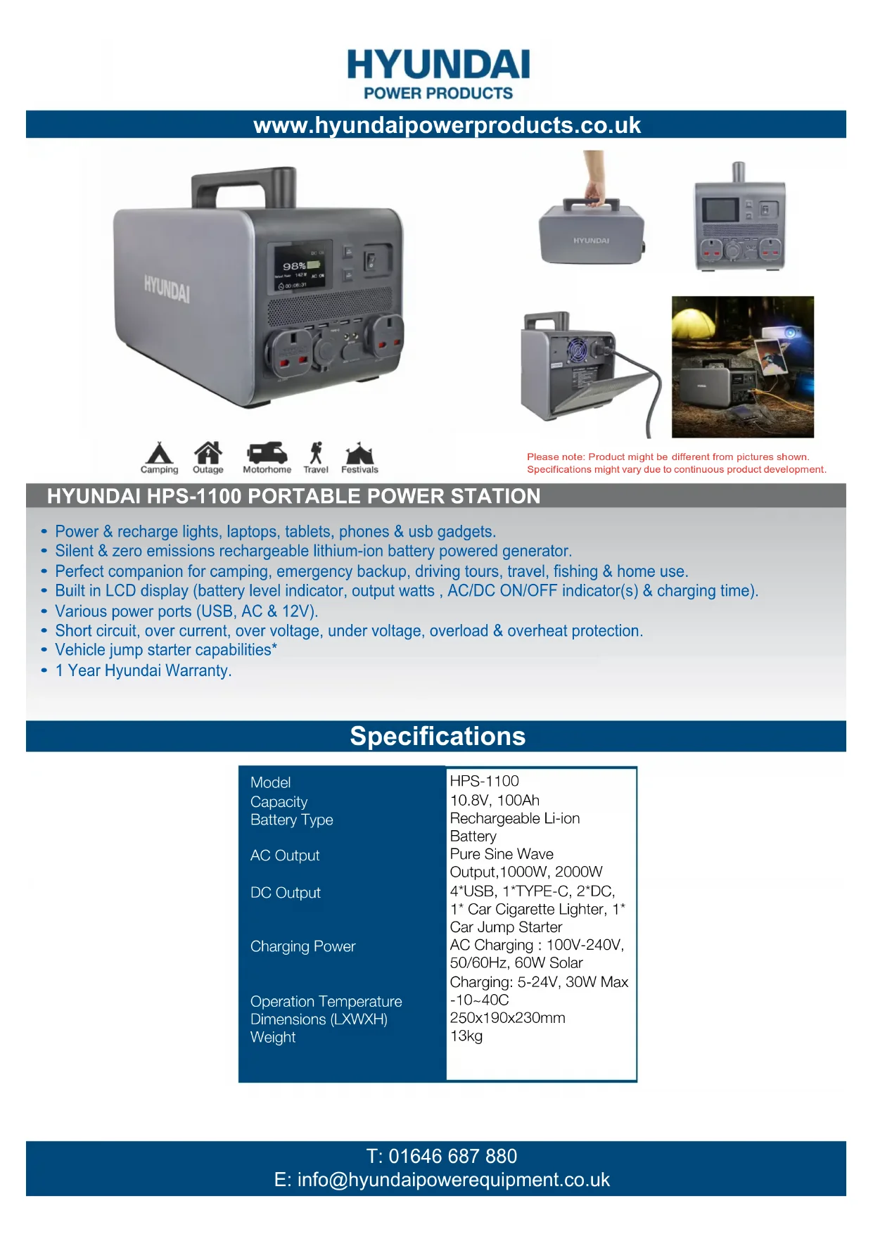 HPS1100 - Générateur HYUNDAI - Notice d'utilisation et mode d'emploi gratuit