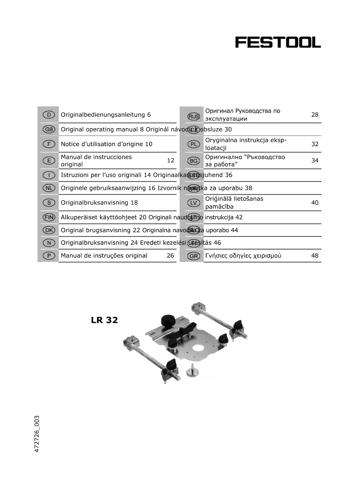 Retrouvez gratuitement la notice de l'appareil LR 32SYS FESTOOL au format PDF.