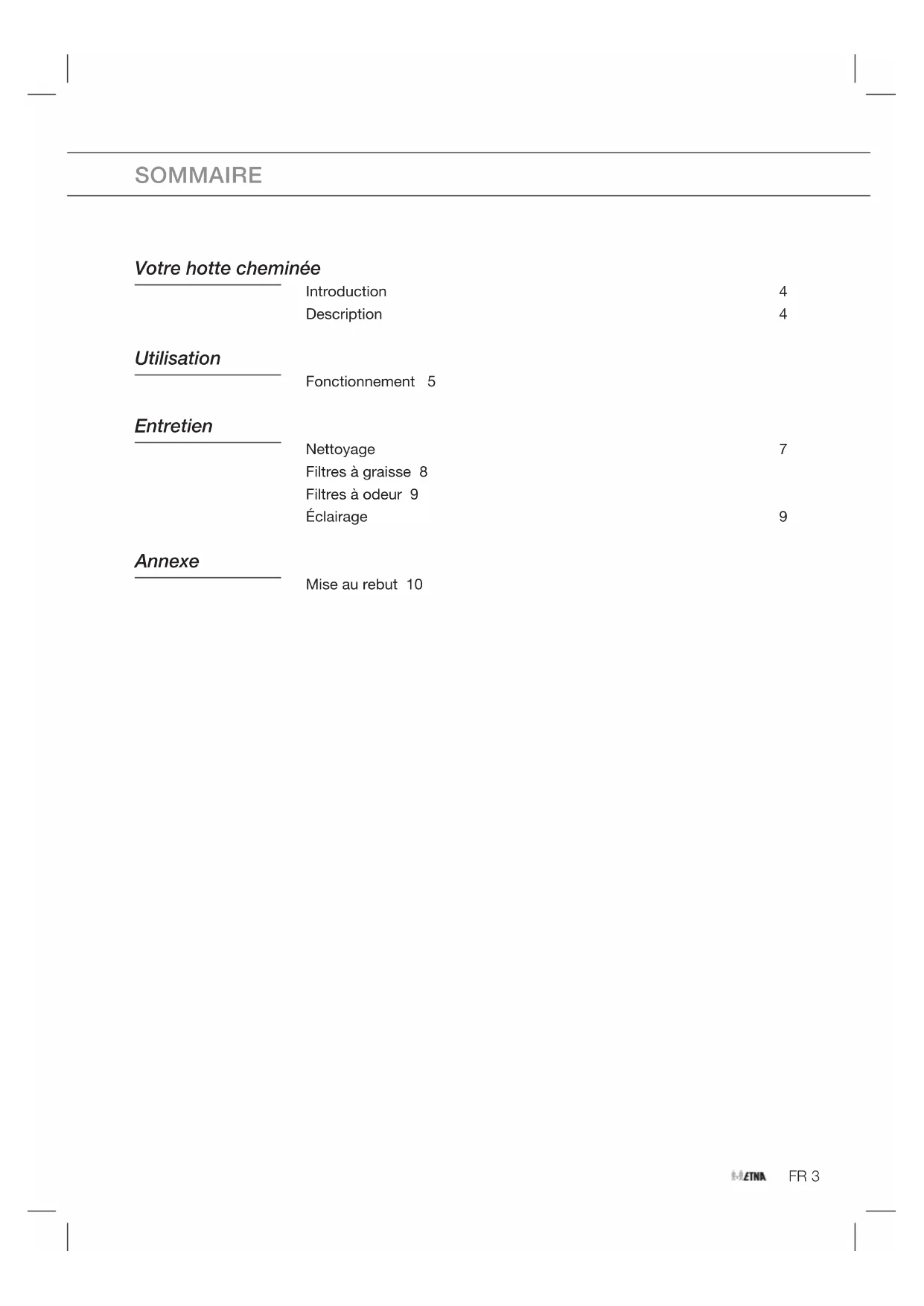HF2016 - Hotte ETNA - Notice d'utilisation et mode d'emploi gratuit