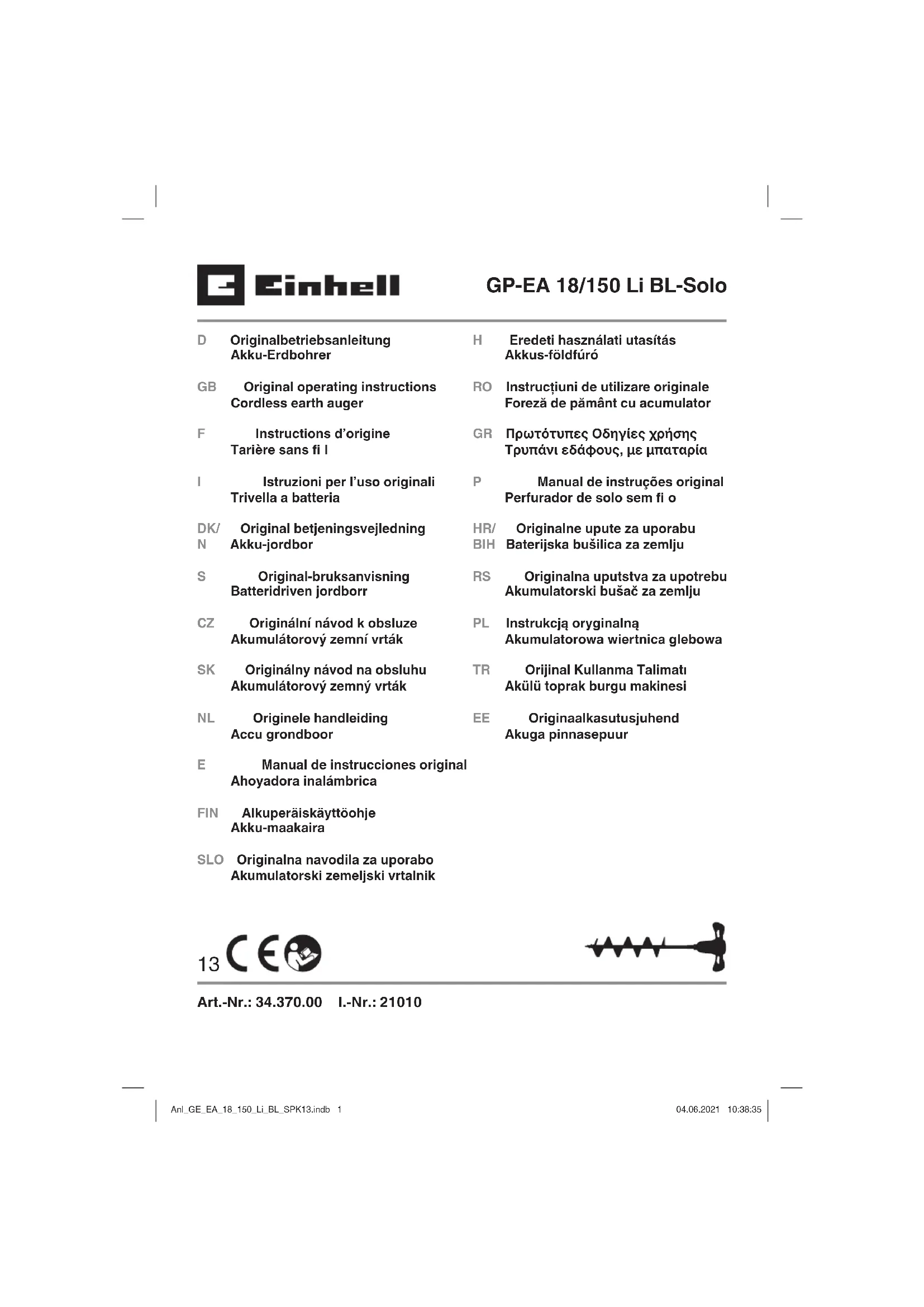 Retrouvez gratuitement la notice de l'appareil GPEA 18150 Li BLSolo EINHELL au format PDF.