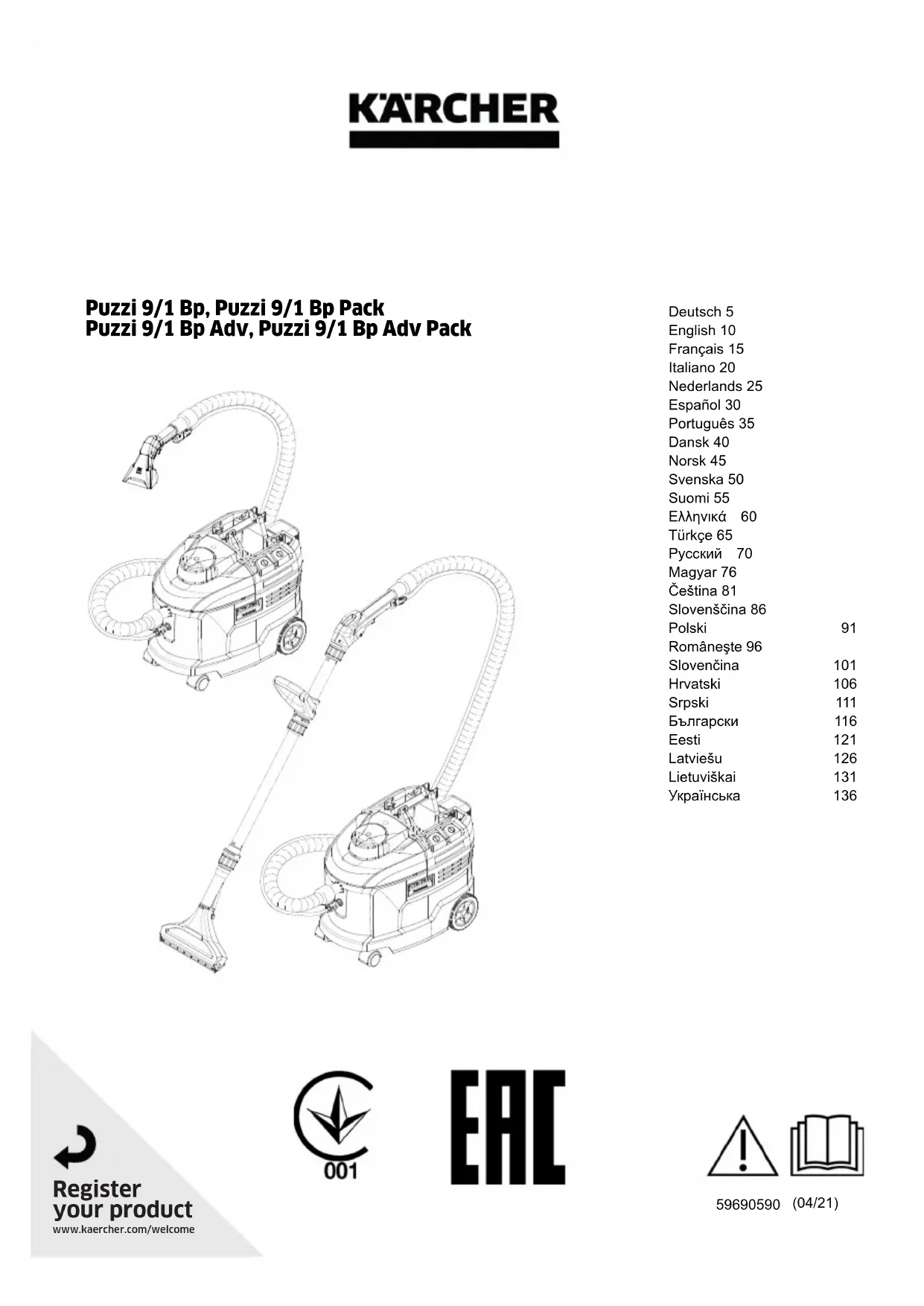Retrouvez gratuitement la notice de l'appareil Puzzi 91 Bp Kärcher au format PDF.