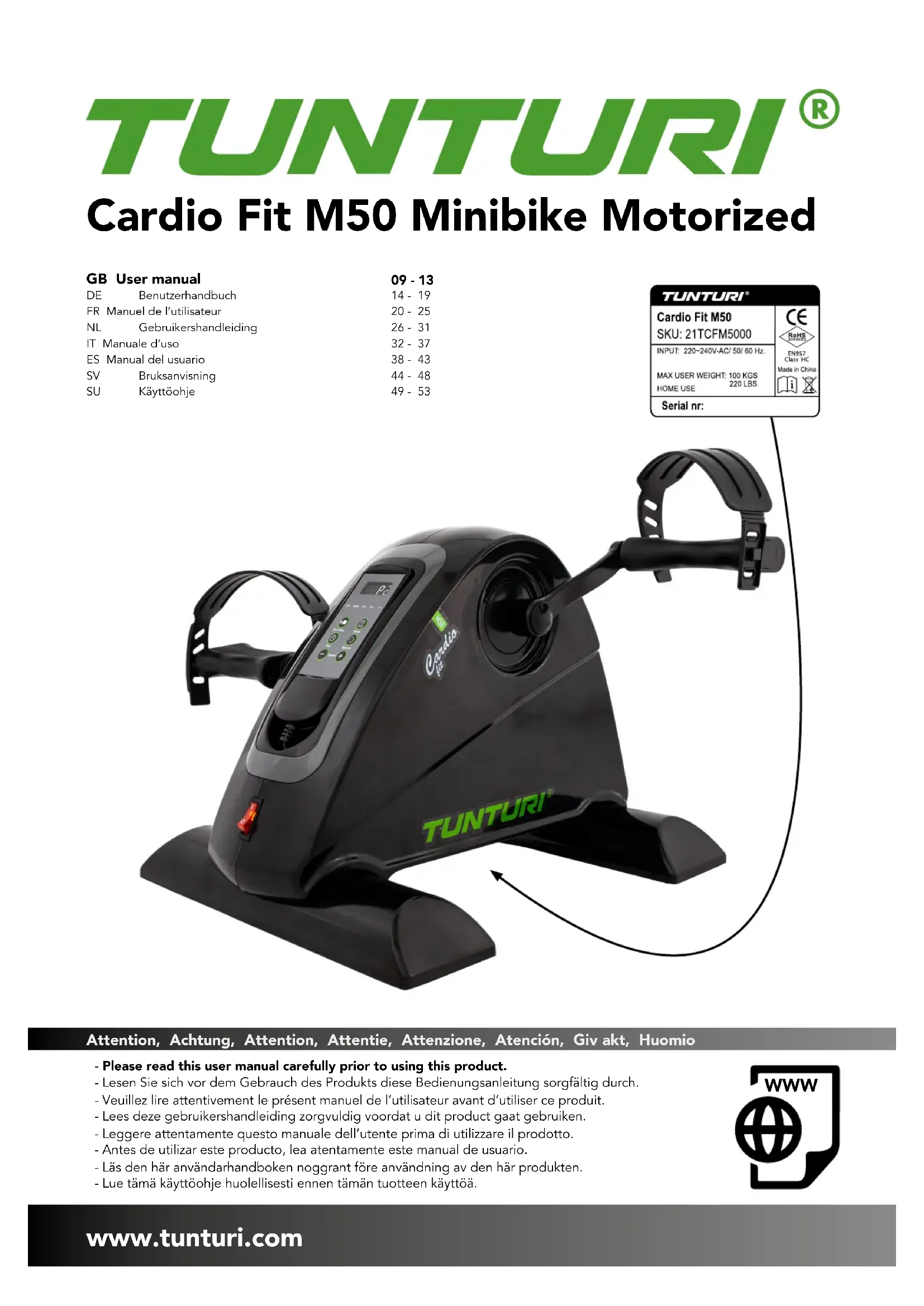Retrouvez gratuitement la notice de l'appareil Cardio Fit M50 TUNTURI au format PDF.