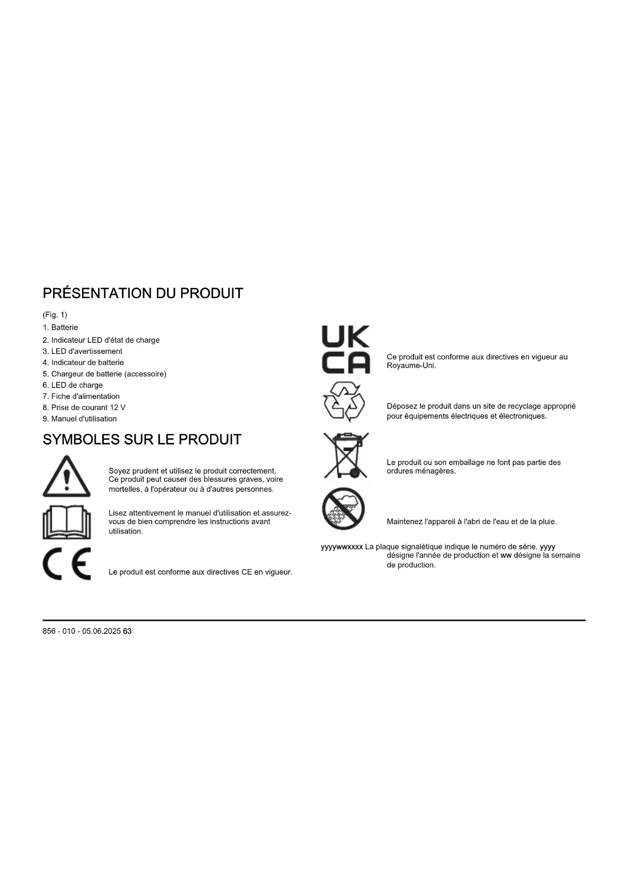 856 - 010 - 05.06.2025 63Remarque: Les autres symboles/autocollants présents sur le