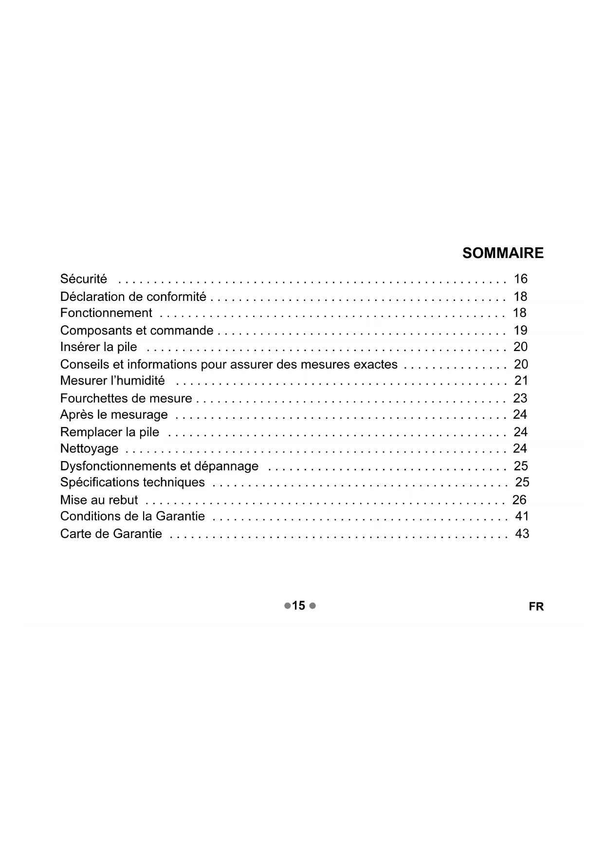 - Fourchettes de mesure p. 23