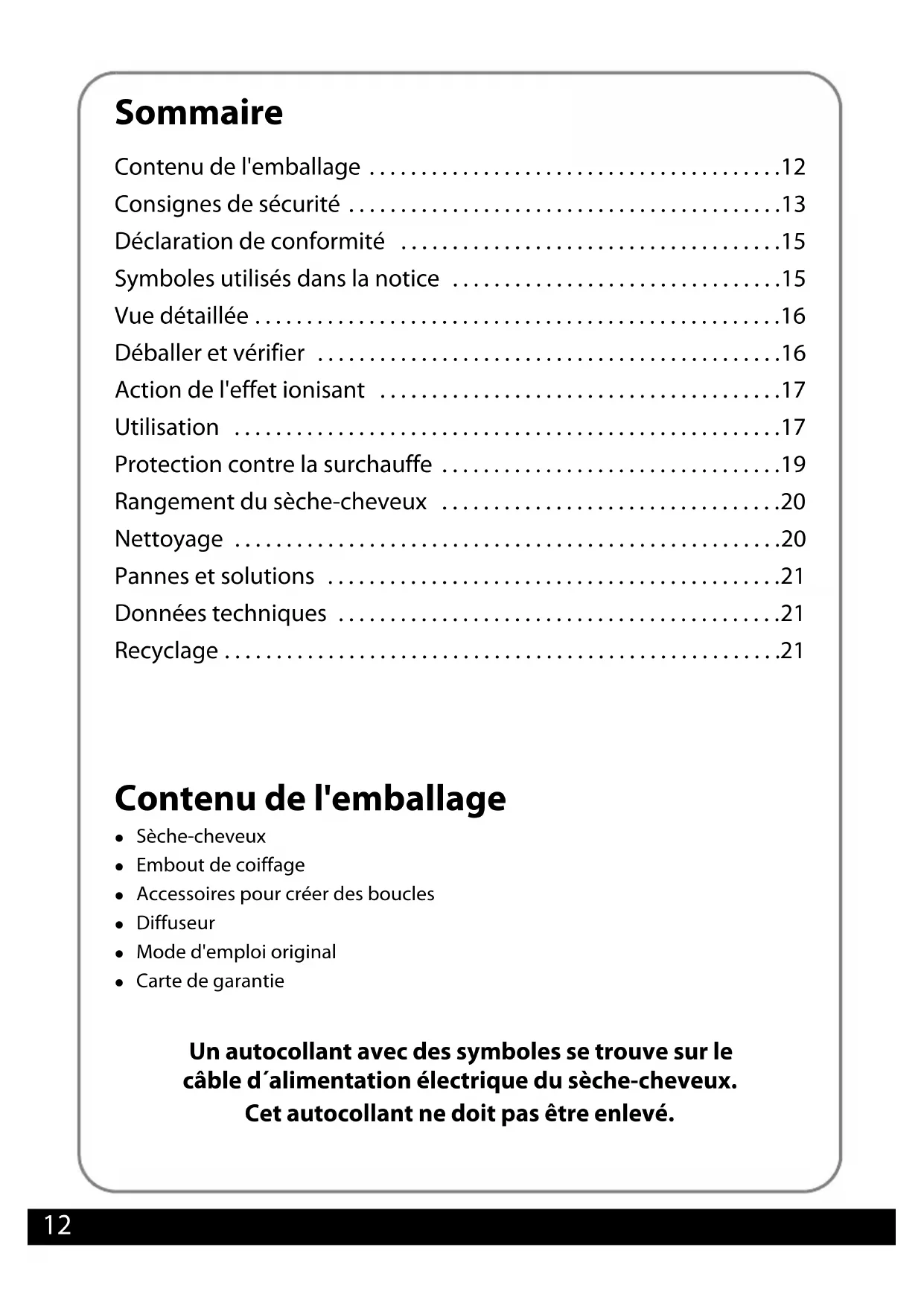 - Rangement du sèche-cheveux p. 20
