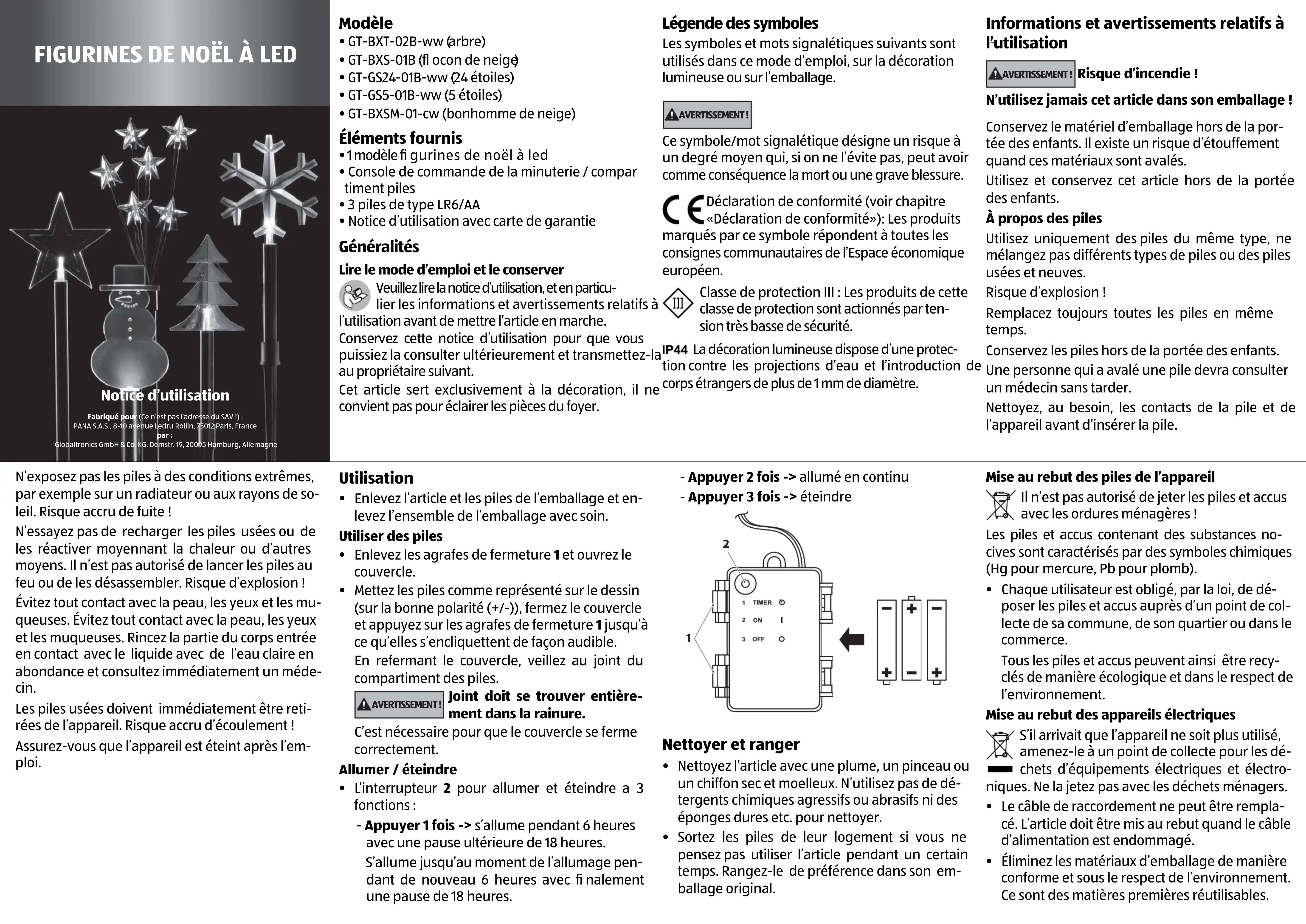 Notice d’utilisation Fabriqué pour (Ce n’est pas l’adresse du SAV !) :PANA S.A.S., 8-10 avenue Ledru Rollin, 75012 Paris, Francepar :Globaltronics GmbH & Co. KG, Domstr. 19, 20095 Hamburg, Allemagne