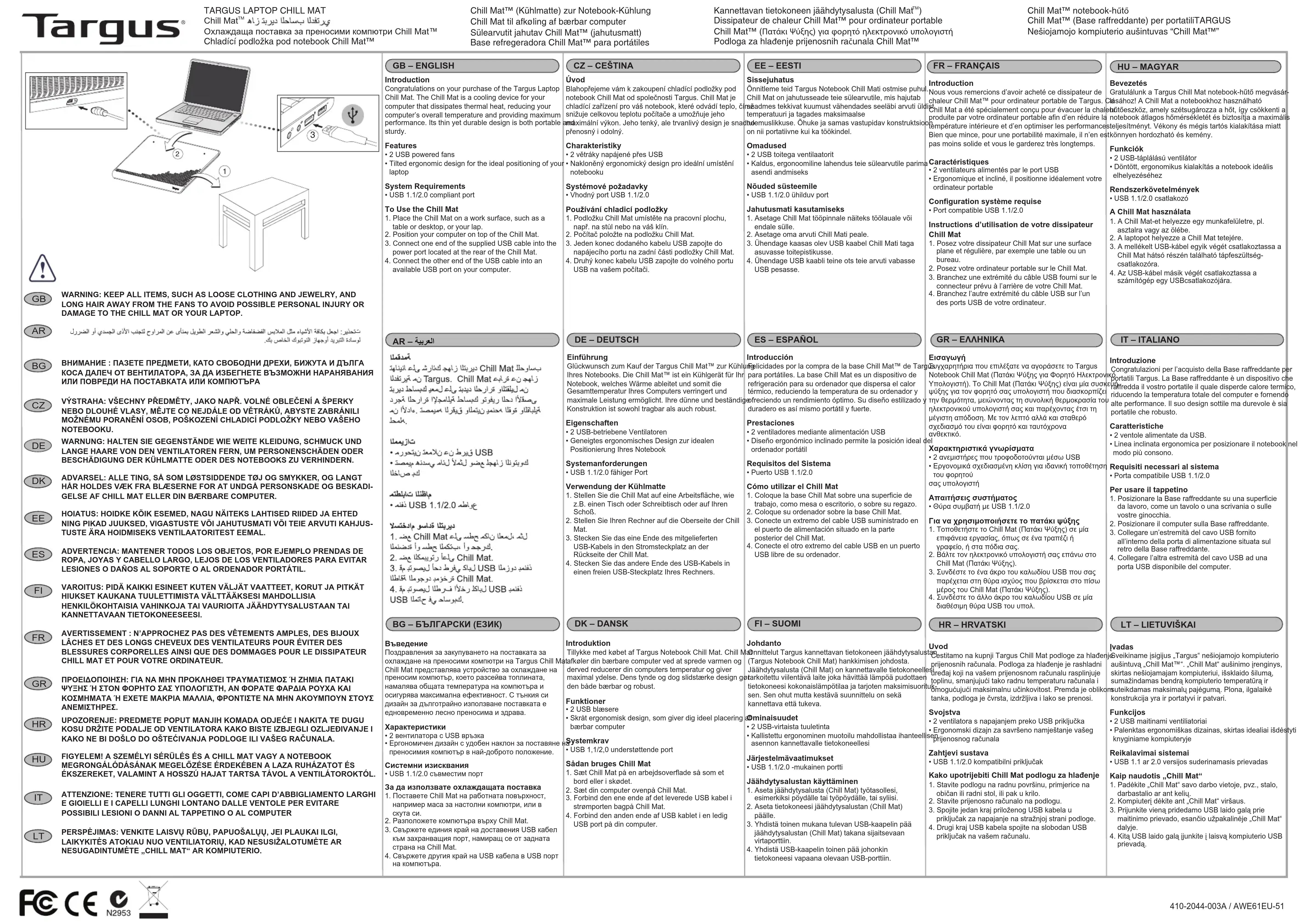AWE61EU - Système de refroidissement pour ordinateur portable TARGUS - Notice d'utilisation et mode d'emploi gratuit