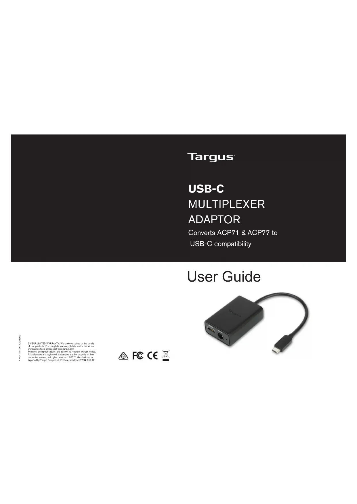 - Multiplexeur USB-C de Targus Multiplexeur Adaptateur USB-C de Targus (Convertit ACP71 et ACP77 vers compatibilité _x0003_USB-C) Multiplexeur Adaptateur USB-C de Targus (Convertit ACP71 et ACP77 vers compatibilité _x0003_USB-C) USB-A USB-A Entrée d’alimentation Entrée d’alimentation USB-C USB-C11 12 Multiplexeur Adaptateur USB-C de Targus (Convertit ACP71 et ACP77 vers compatibilité _x0003_USB-C)