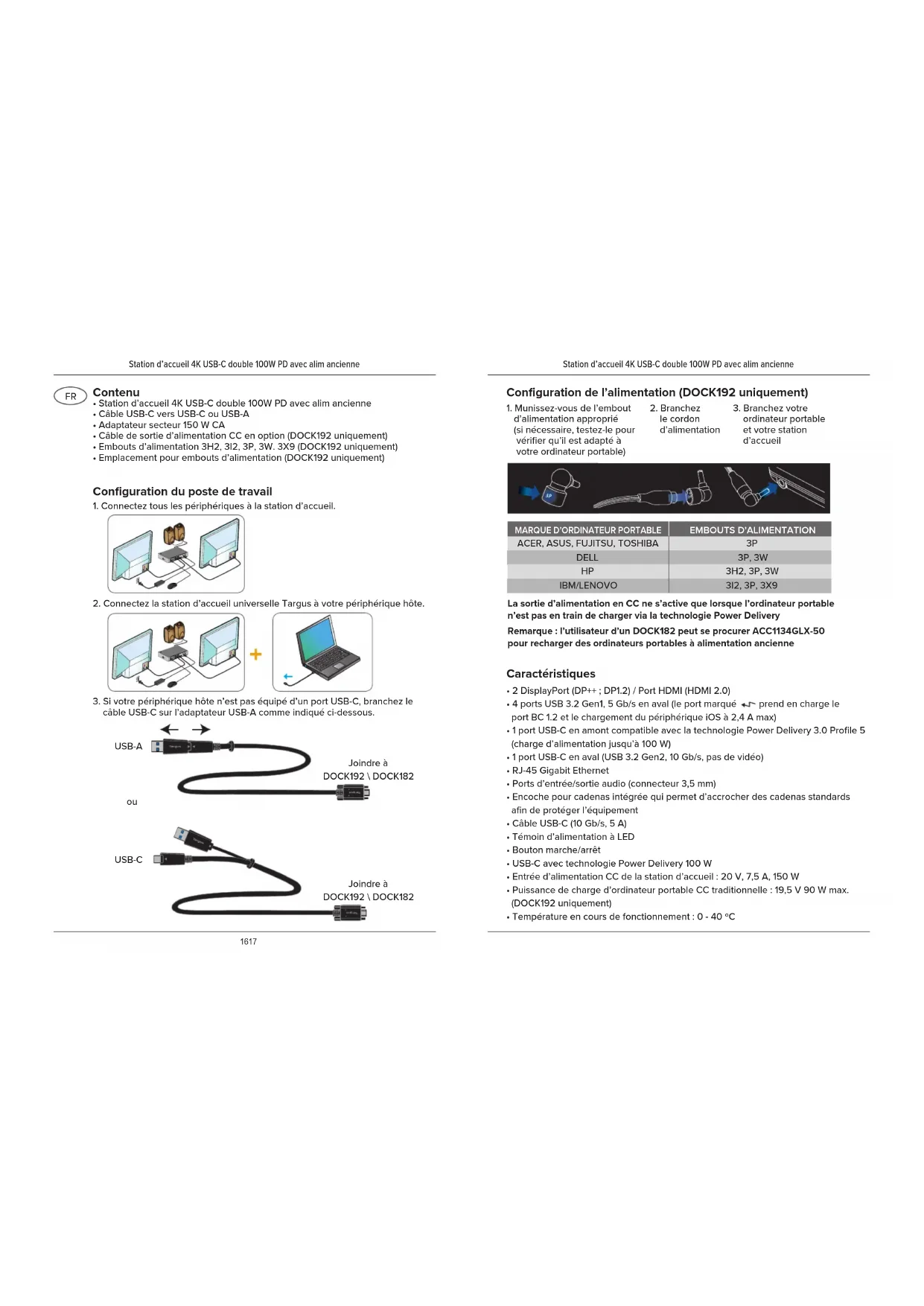 Station d’accueil 4K USB-C double 100W PD avec alim ancienne Station d’accueil 4K USB-C double 100W PD avec alim ancienne Caractéristiques
