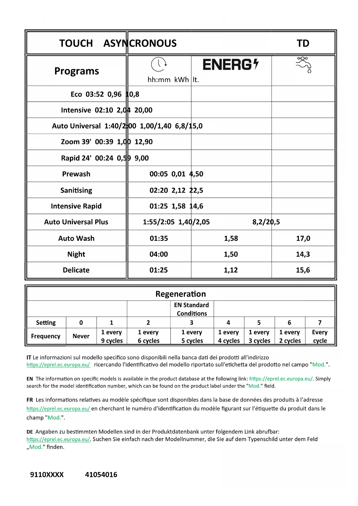 | Consommation d'eau | 9,5 litres par cycle |
