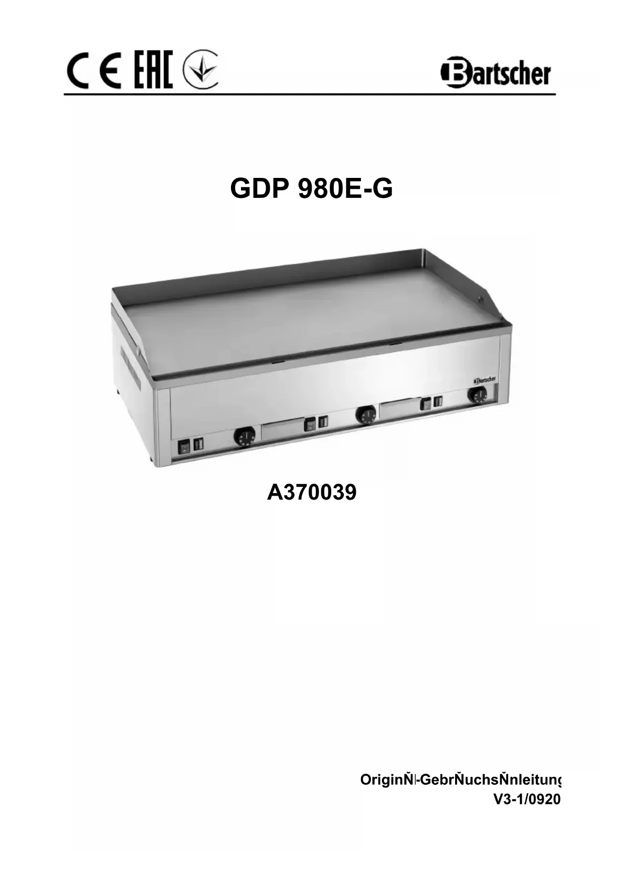 GDP 980EG - Plaque de grill BARTSCHER - Notice d'utilisation et mode d'emploi gratuit