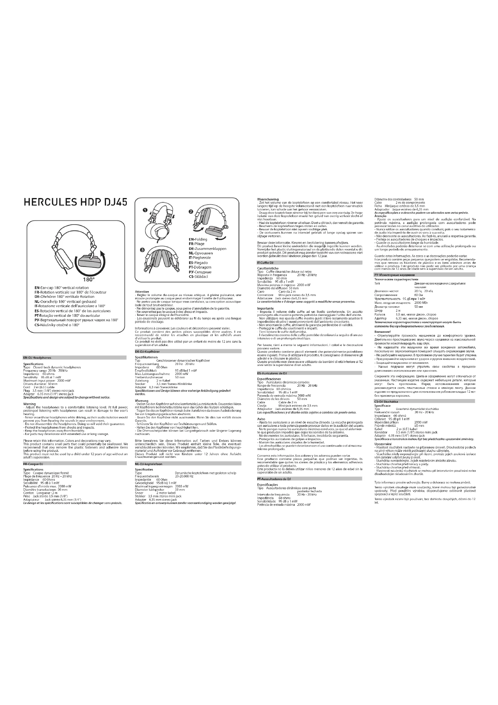 HDP DJ45 - Ecouteur HERCULES - Notice d'utilisation et mode d'emploi gratuit
